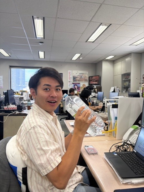 2Lのペットボトルから水分補給中。これくらいはないと足りないのだそうです。
