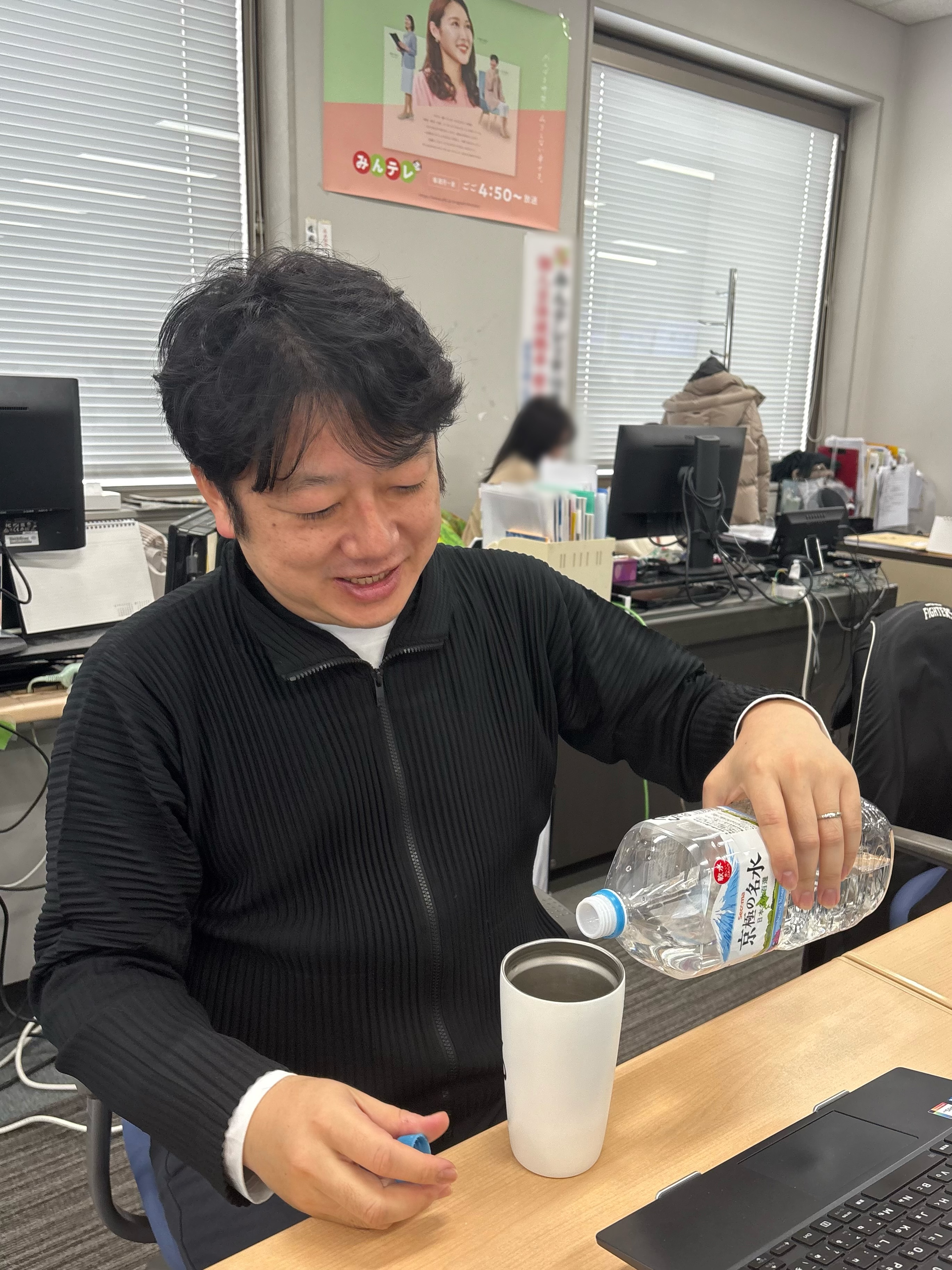 「牛乳を注ぐ女」ならぬ「水を注ぐ廣岡さん」(狐野アナ命名)