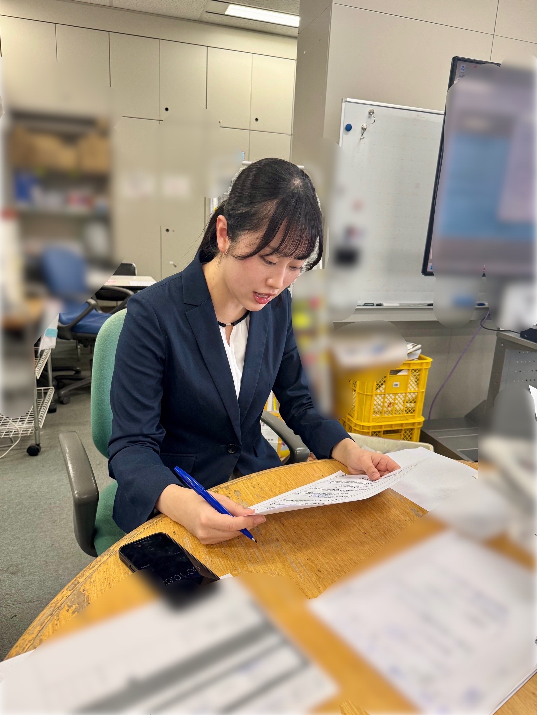 4月ごろ?新人研修にいそしむ狐野アナ。頑張って滑舌教本、読んでいます。