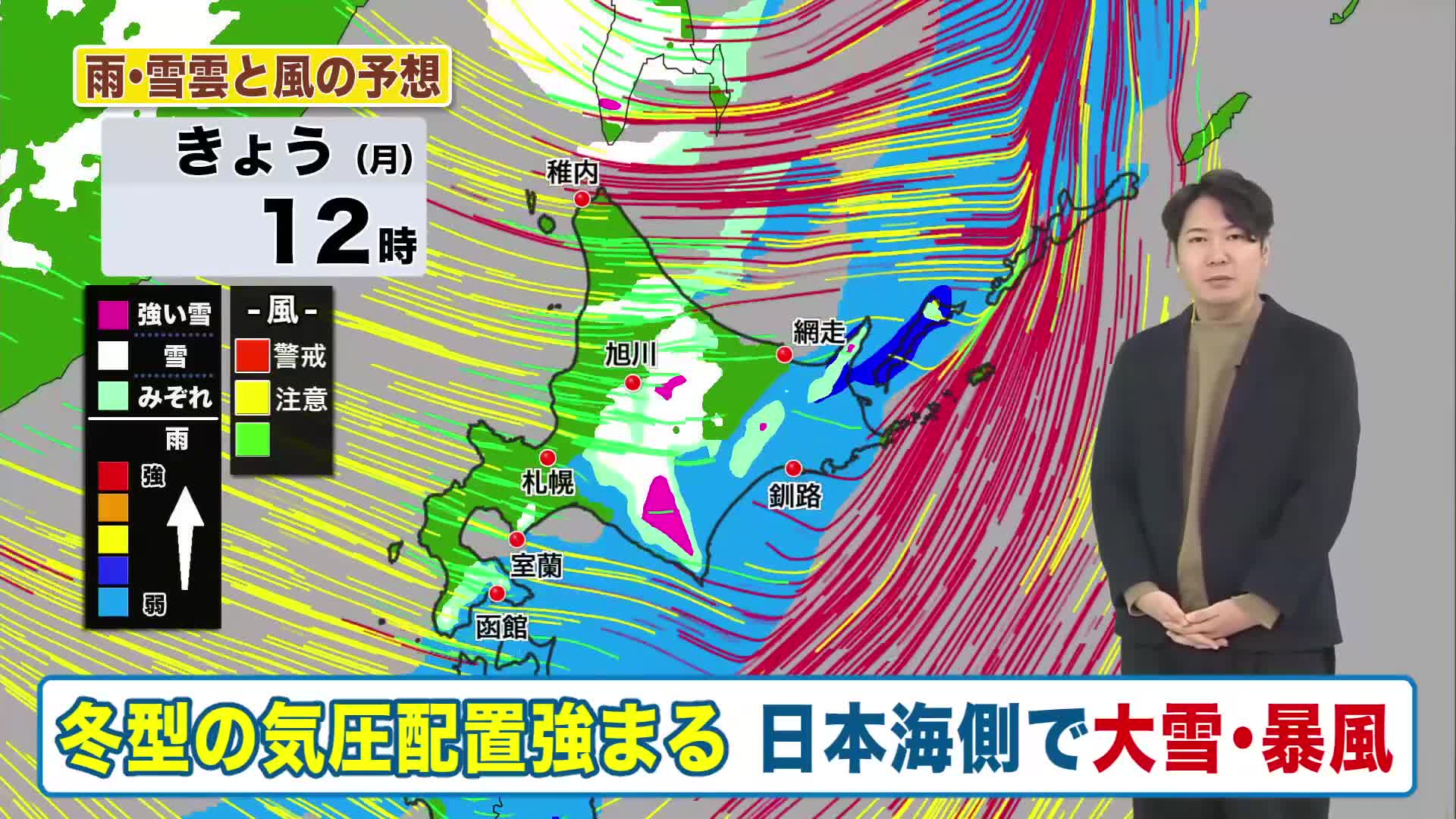 【北海道の天気 17日(月)】冬型強まり日本海側は暴風に警戒…大雪の所も!あすは今季一番の寒気 札幌は最高気温1℃の予想