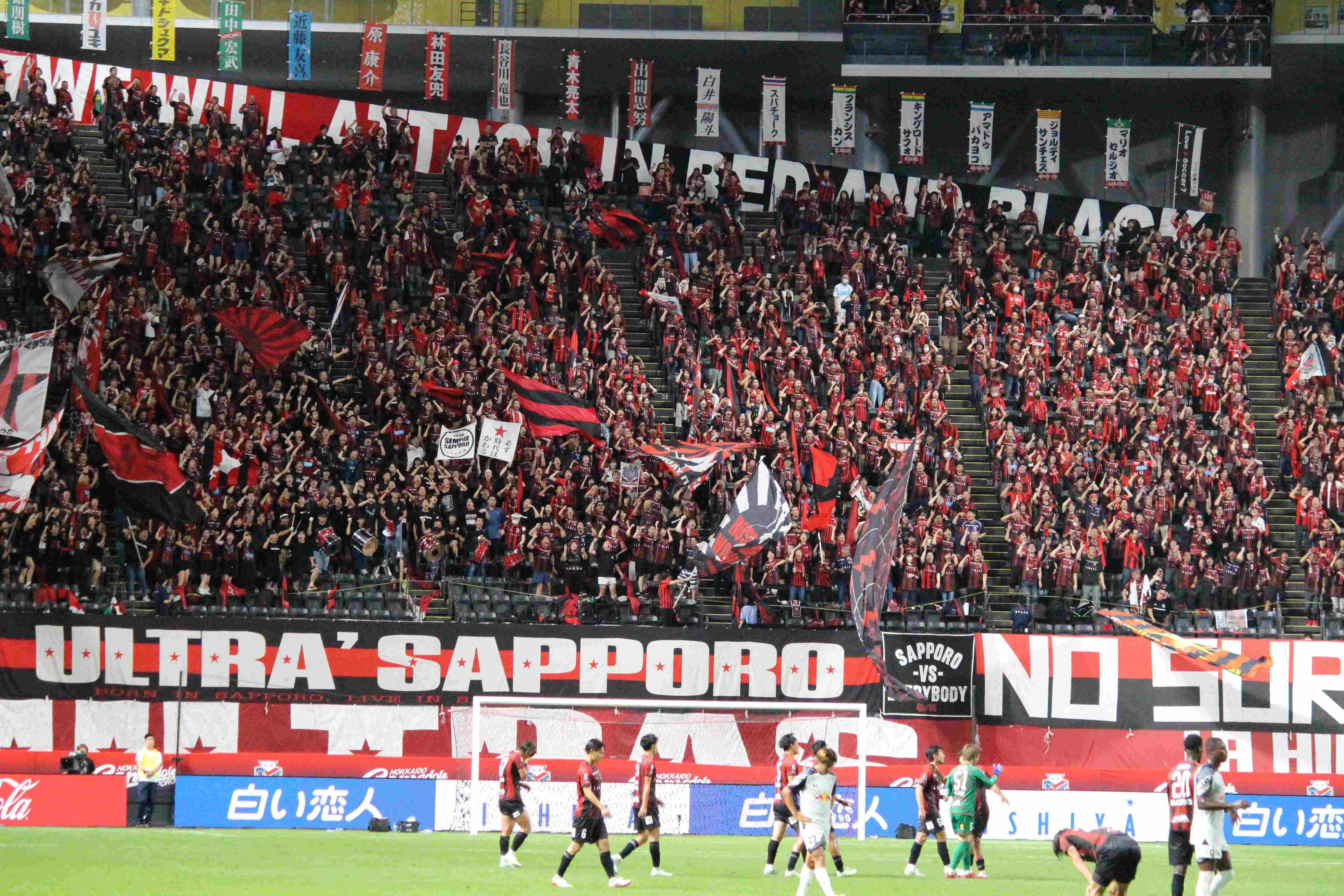 勝利に沸くサポーター