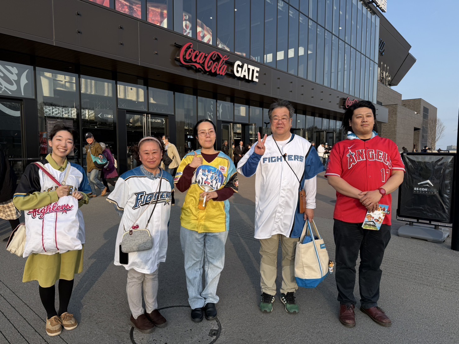タイ出身のチャニサラーさん(中央)中頓別町民と野球観戦に