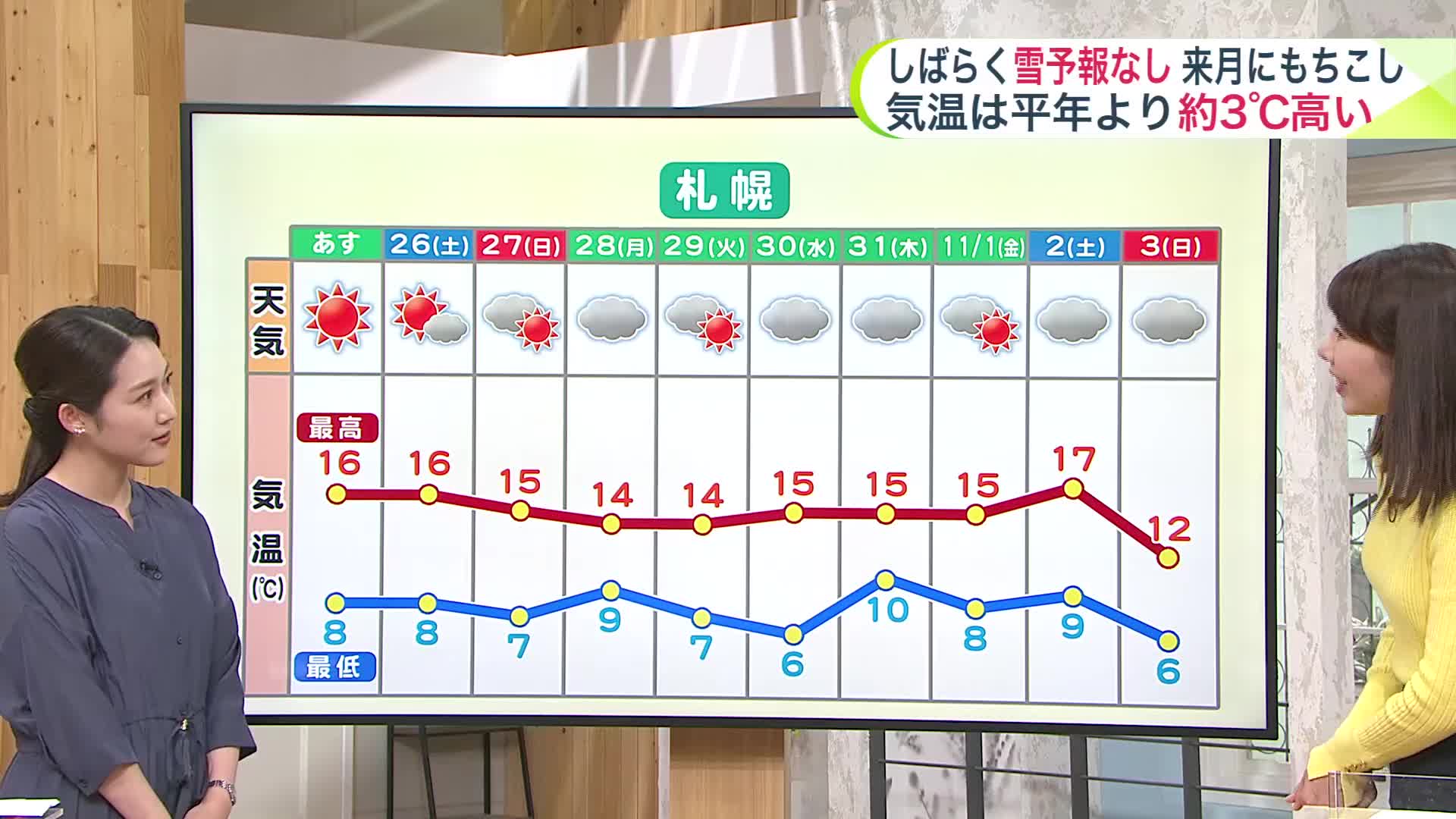 【北海道の天気 10/24(木)】晩秋の天候は?去年は記録的高温でしたが…最新の1か月予報が発表!積雪は遅くなるかも