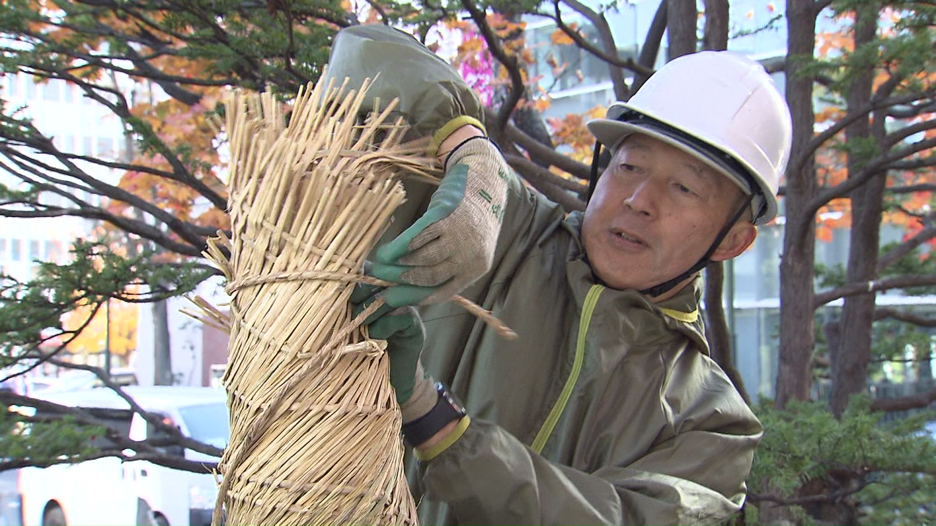 冬の足音が近づく中、北海道札幌市の大通公園で11月6日、雪の重みから樹木を守る「冬囲い」の作業が始まりました。