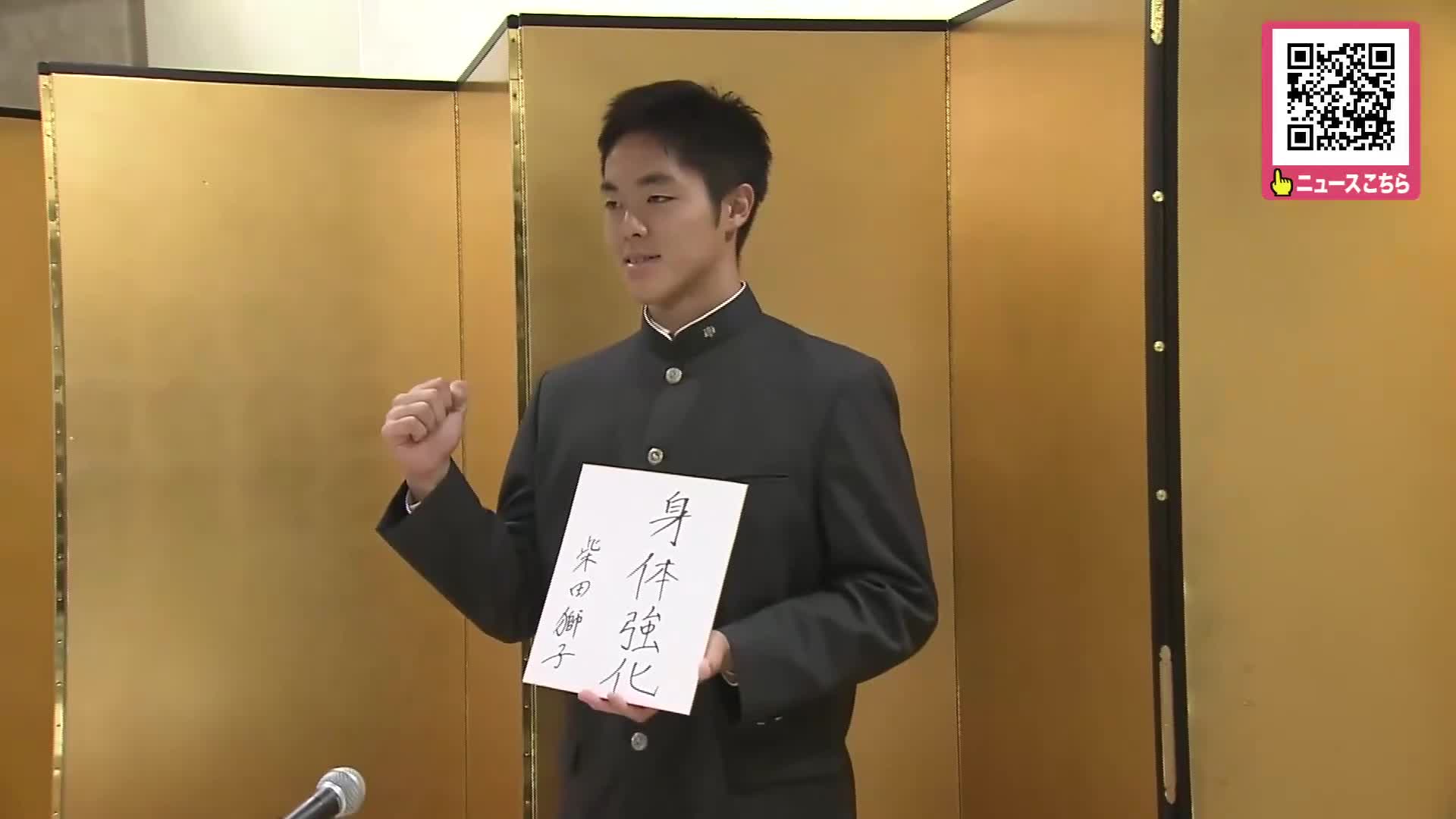 柴田選手は最速149キロの直球と、高校通算19本のホームランを記録。用意された色紙に「身体強化」と書き、プロでの飛躍を誓いました。