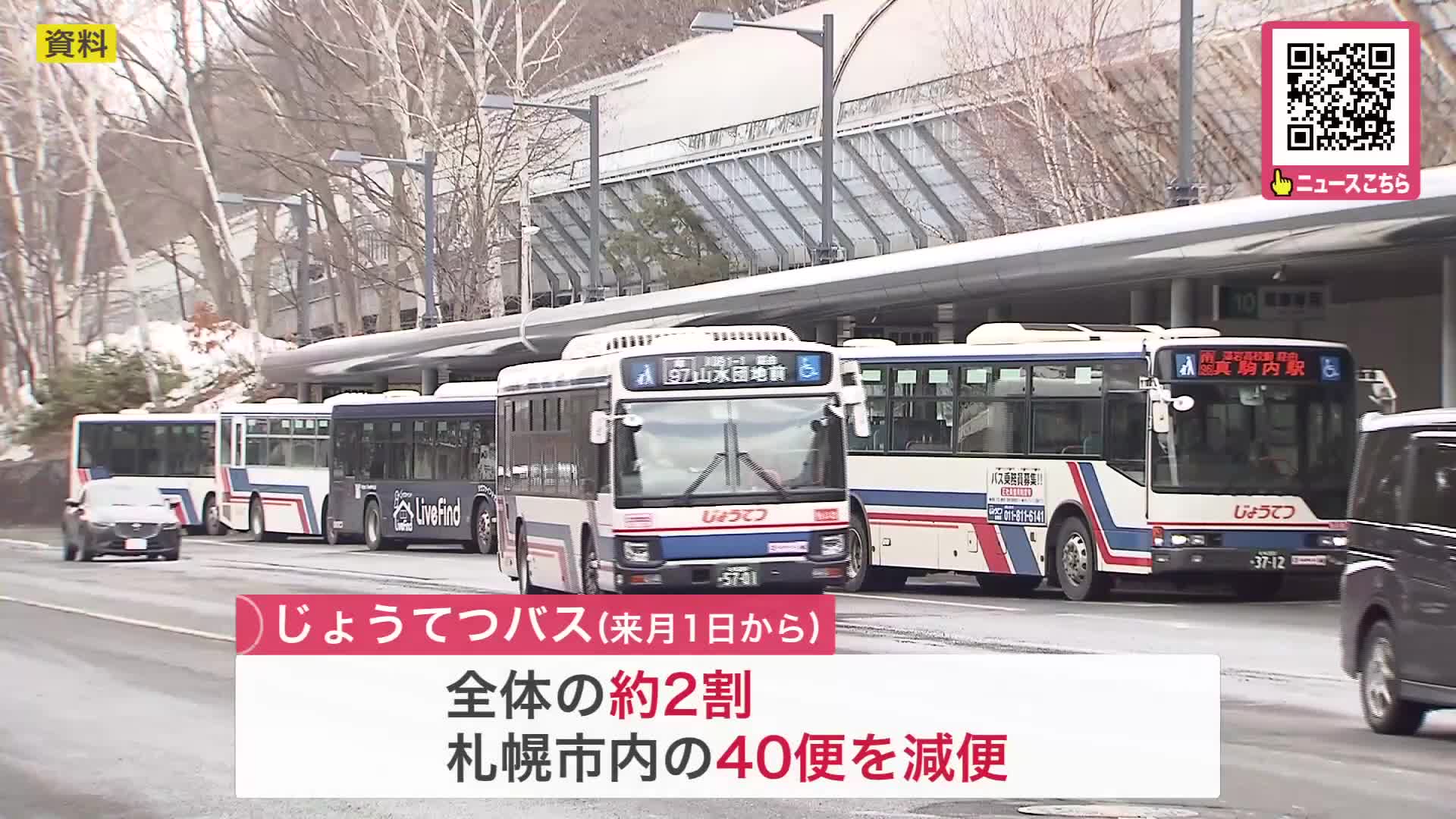 12月1日に改正される路線バスのダイヤでは、じょうてつバスが札幌市内を運行する約2割の40便を減便します。