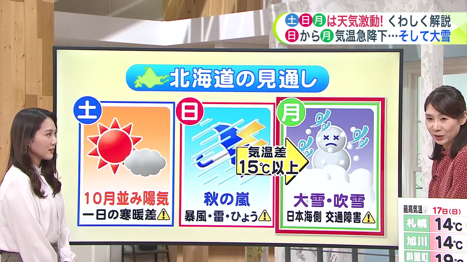 特に、17日(日)~18日(月)の気温差は10℃以上にもなりそうです。