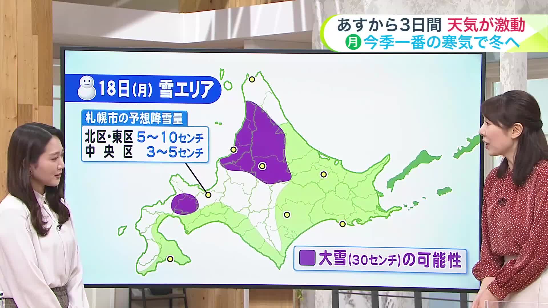 札幌市内も、北区、東区を中心に積雪状態となりそうです。