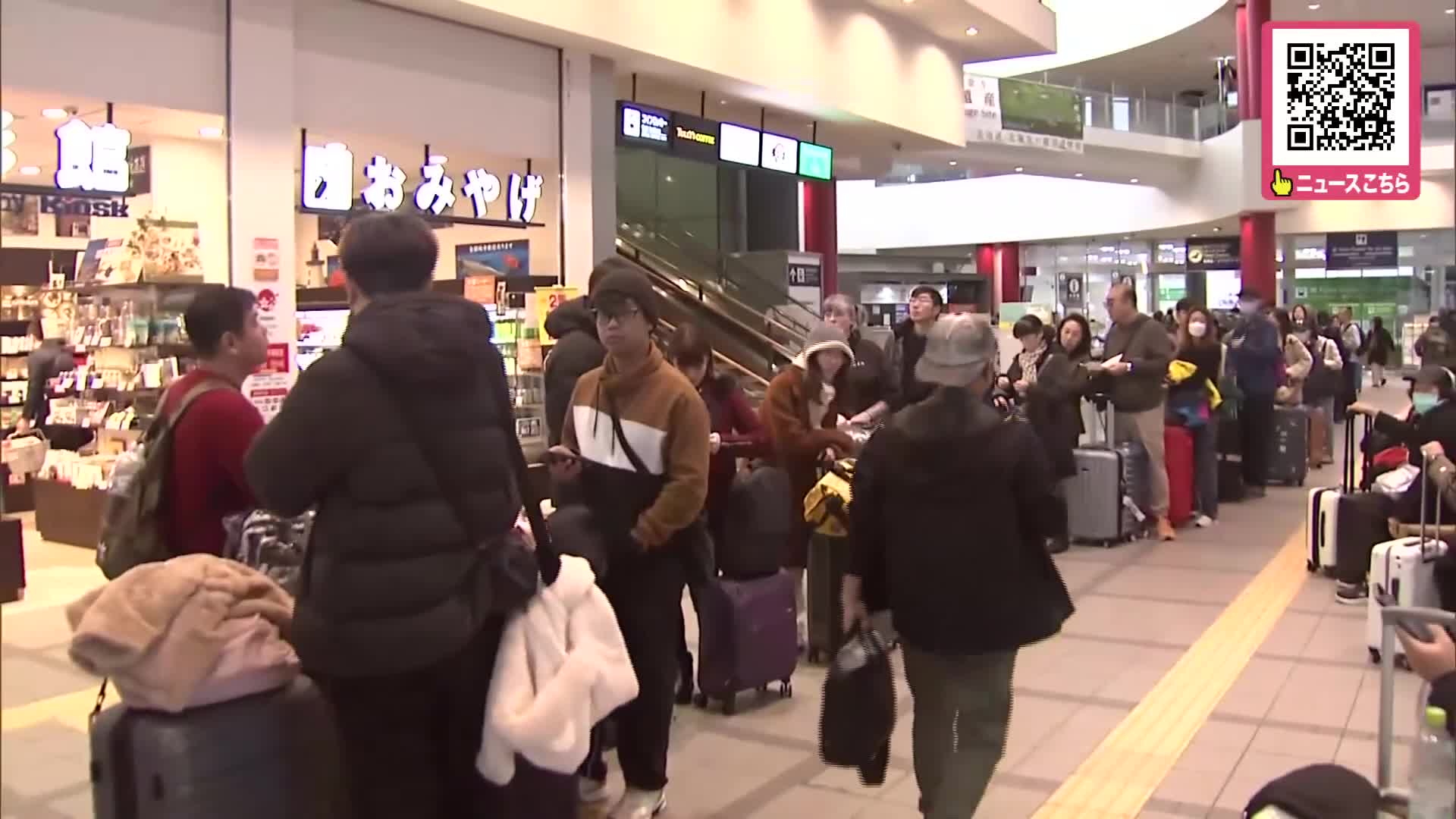 JR函館駅にできた長い行列。 これは脱線事故の影響で特急列車などに乗れなかった乗客たちです。