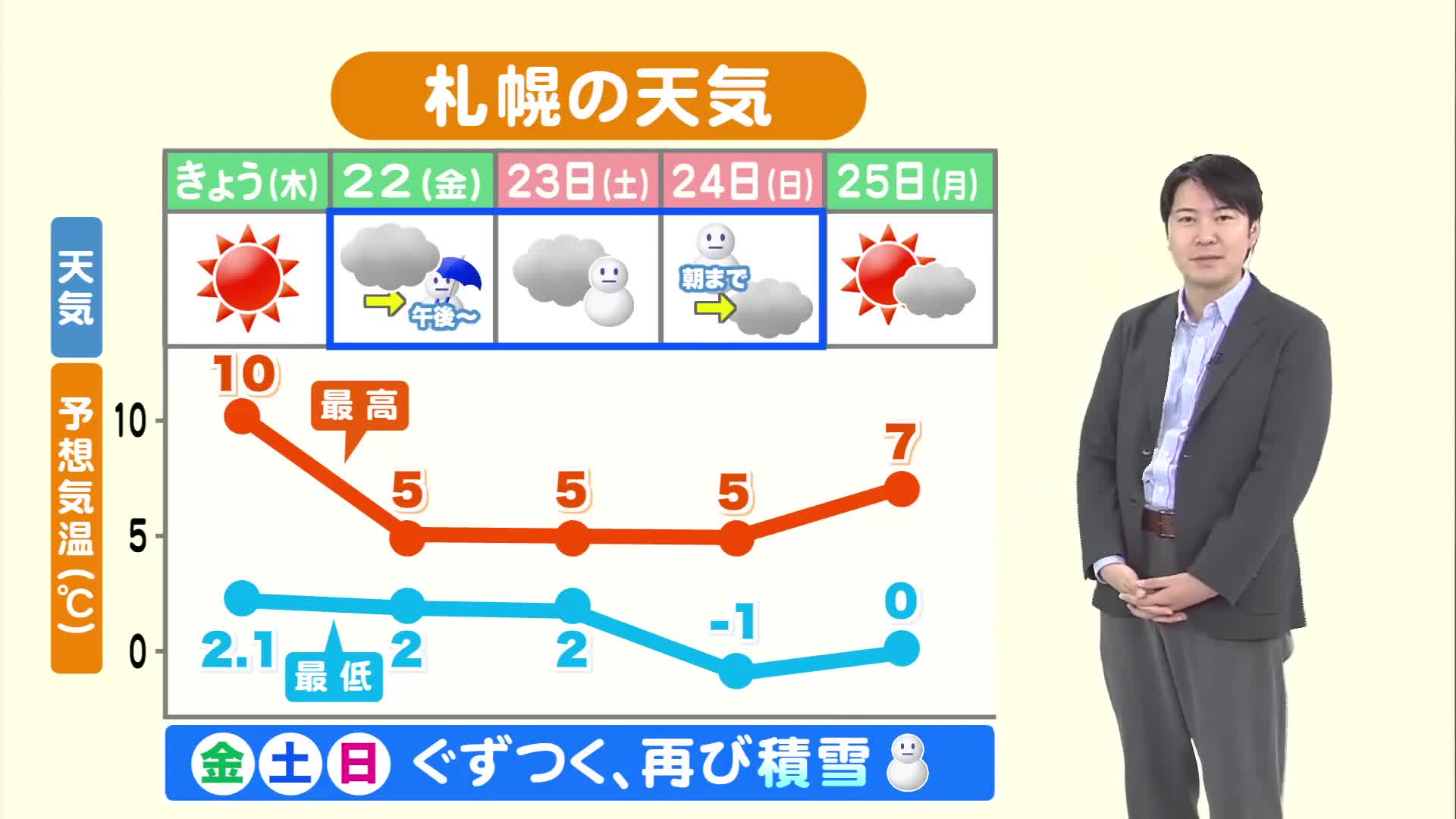 札幌も10℃まで上がり、日差しが暖かく感じられそうです。