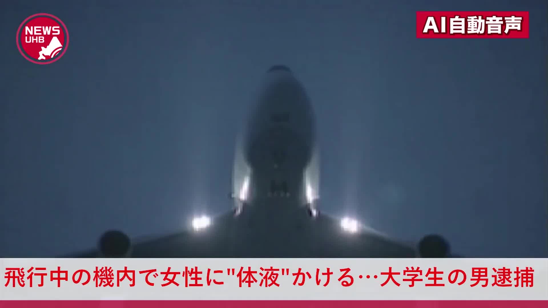 着陸直前の航空機内で、夜景を見ていた女性に"体液"をかけたとして、20歳の大学生の男が不同意わいせつの疑いで逮捕されました。