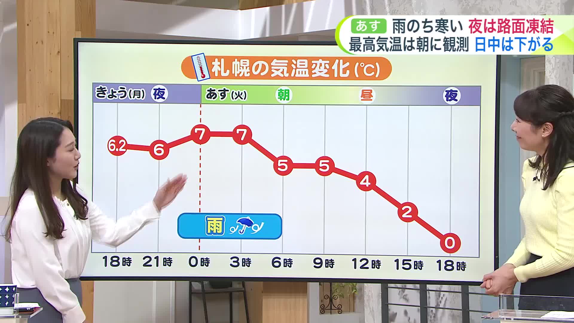 夕方以降は、札幌など主要都市でもマイナスです。