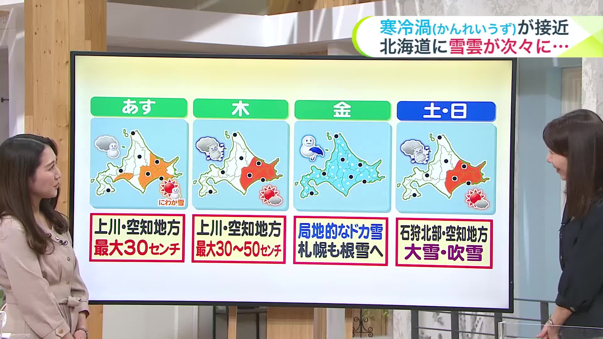 北海道【菅井さんの天気予報 12/3(火)】“寒冷渦(かんれいうず)”が接近!次々と雪雲がかかり内陸部では積雪が一気に増える…札幌も根雪に