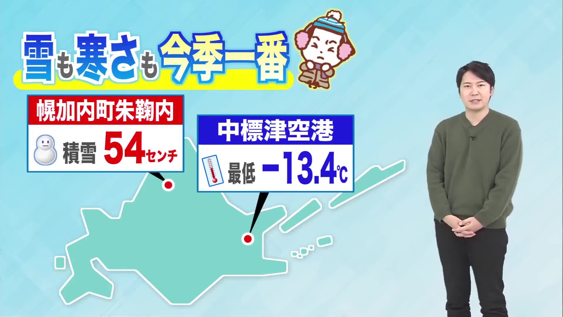 また、中標津空港では、最低気温が氷点下13.4℃と、今季一番の冷え込みとなりました。