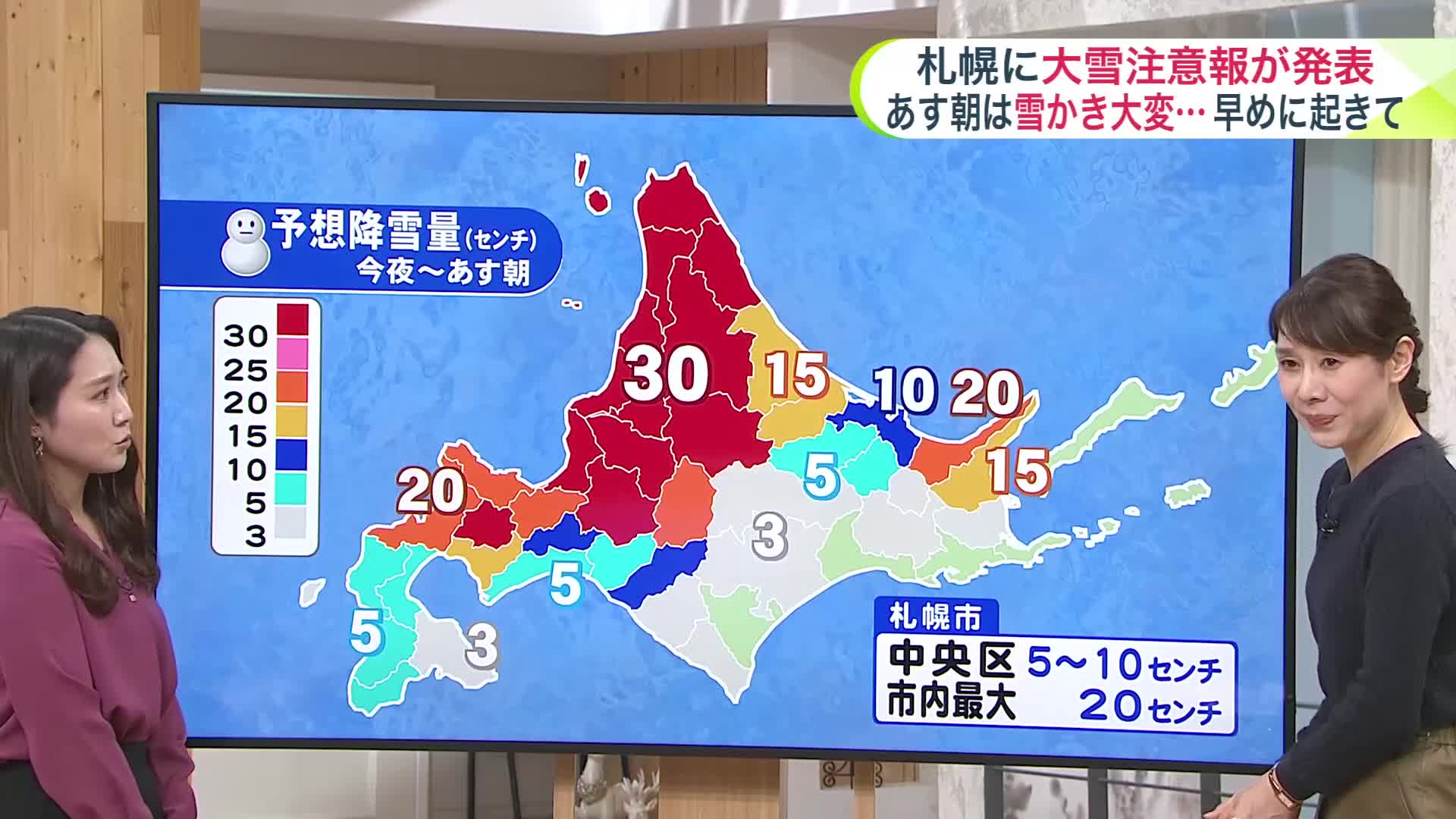 北海道【菅井さんの天気予報 12/11(水)】札幌に大雪注意報が発表!あす朝にかけて最大20センチ…日本海側北部はさらに積雪が増える