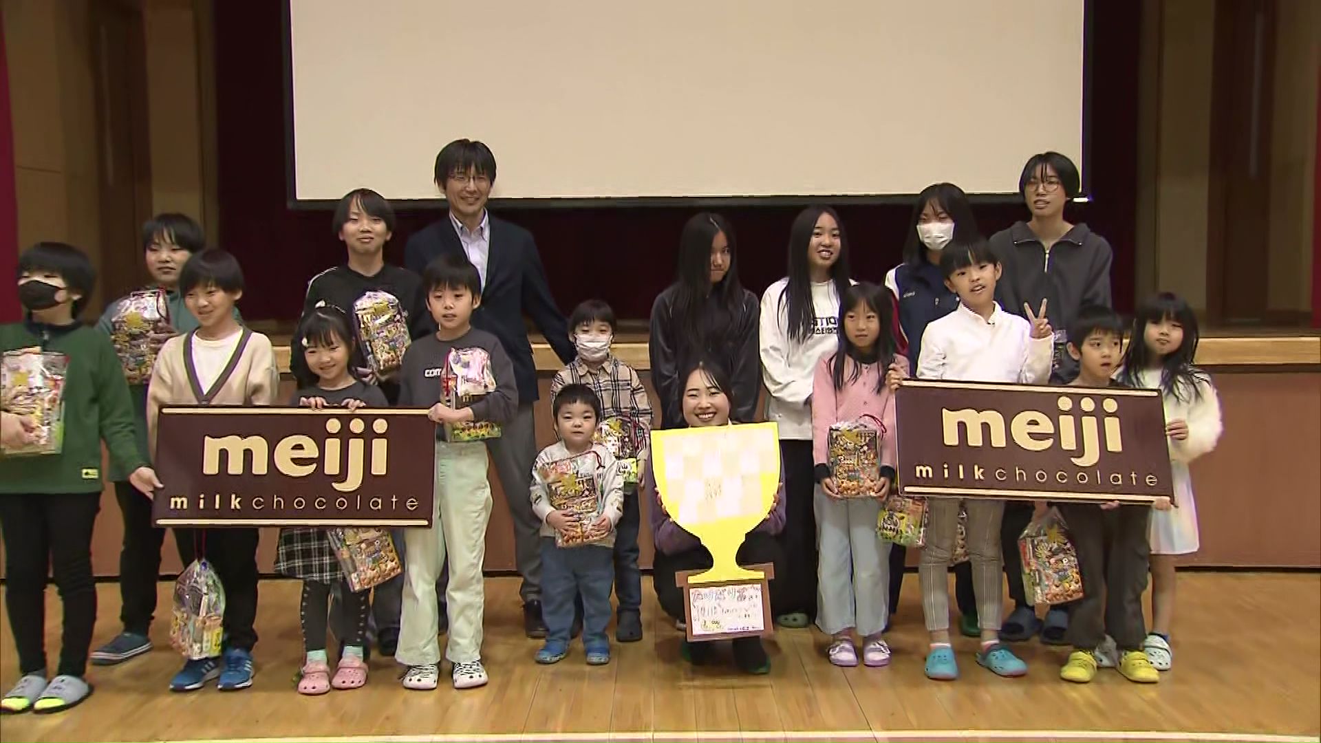 大会の優勝副賞「明治製品10年分」のうち半分の5年分、約2000個のお菓子を贈呈しました。