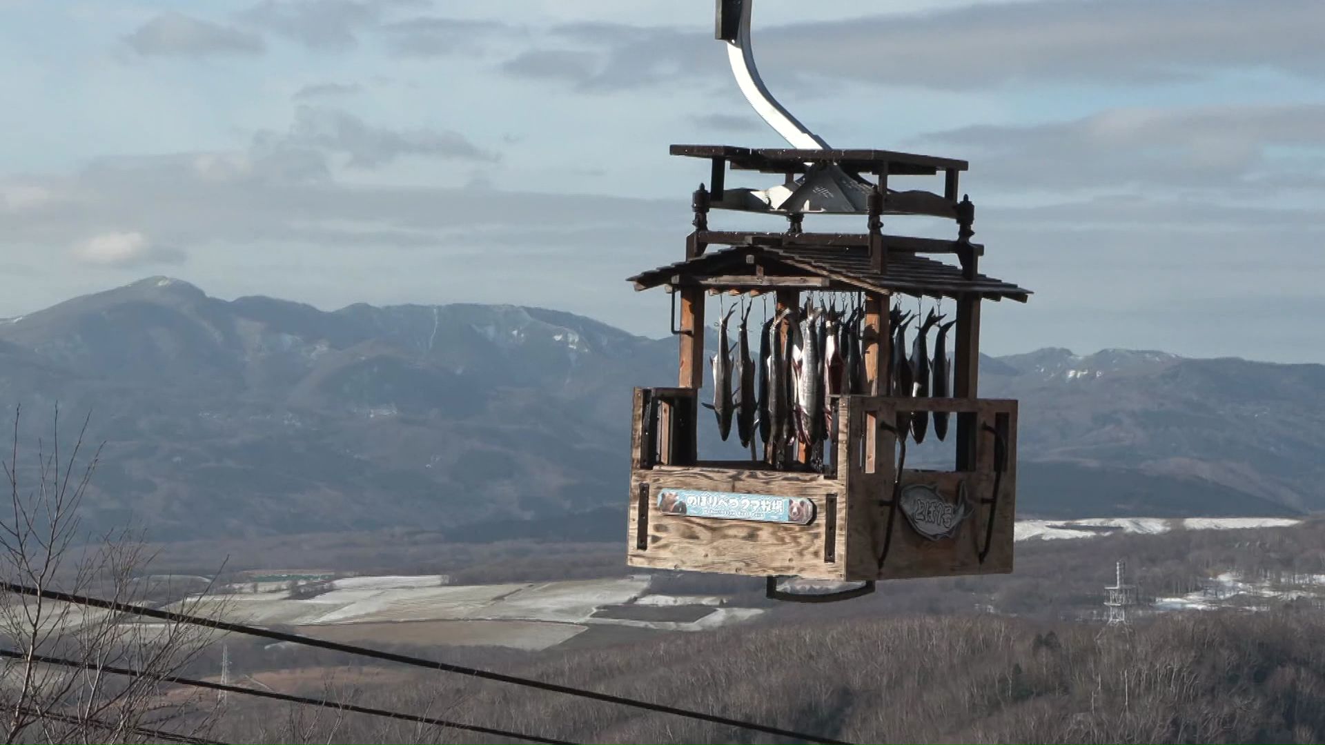 まるで空を飛ぶ“サケトバ”-冬の風物詩・のぼりべつクマ牧場の『とば号』運行…「たくさんのクマたちにあげたい」 ゴンドラに吊るして乾燥約120本ヒグマのエサに 来年3月下旬ごろまで 北海道登別市