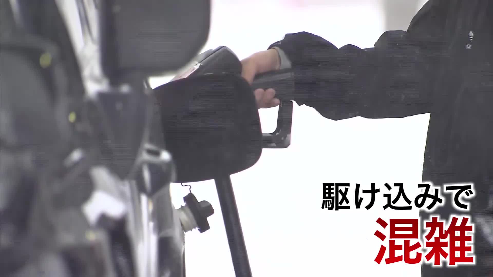 12月18日、すでに札幌市のガソリンスタンドでは値上げ前に給油しようとする客で混雑が。