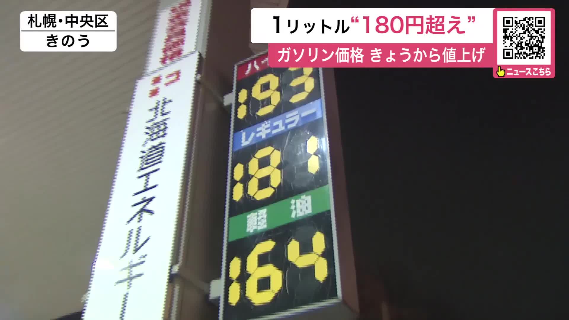札幌市中心部のガソリンスタンドでは、給油しに来た人が180円超えの高値に驚いていました。