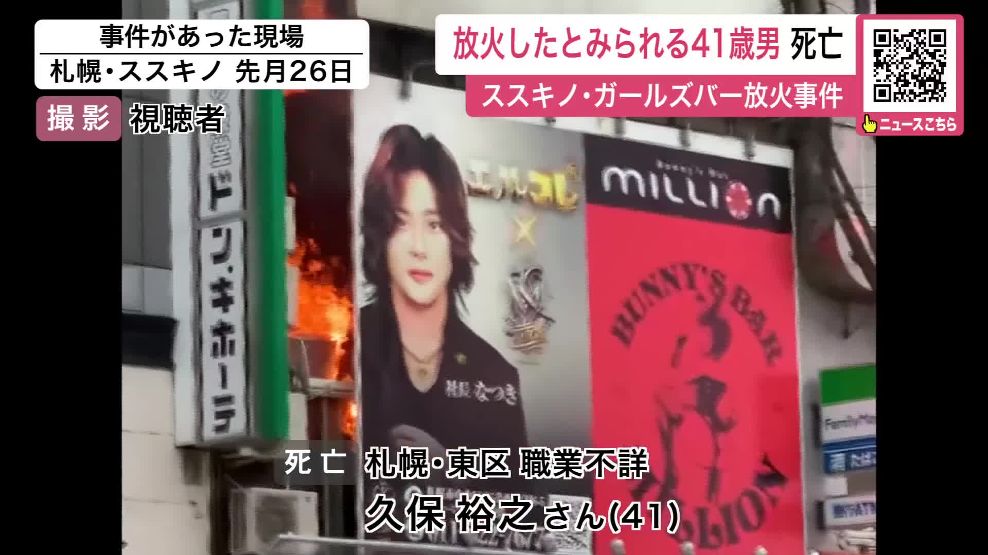 北海道札幌市の繁華街「ススキノ」のガールズバーで先月発生した放火事件で、意識不明だった火をつけたとみられる41歳の男が搬送先の病院で死亡しました。