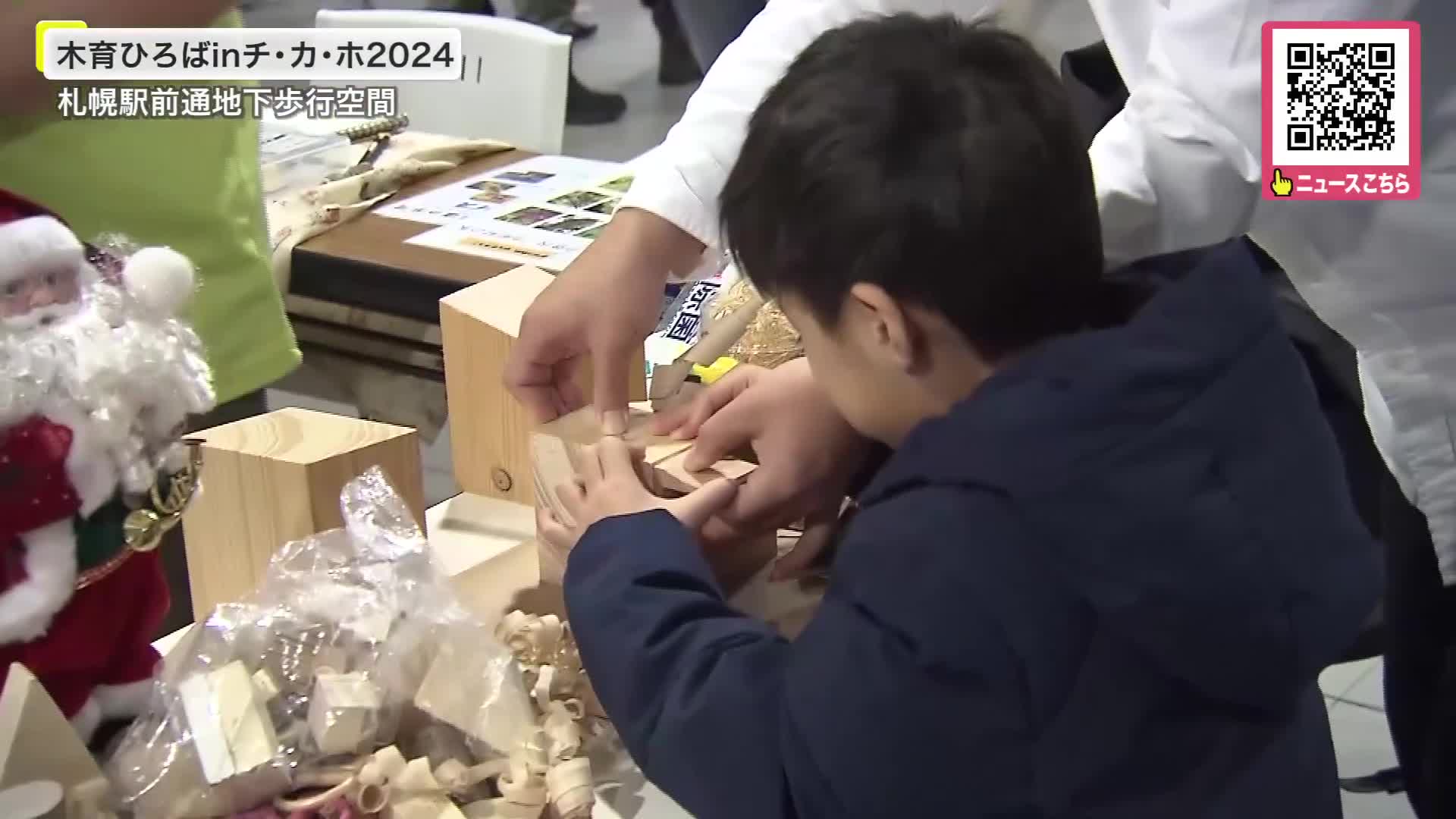 札幌駅前地下歩行空間で始まったこのイベントは、子どもたちに木と触れ合いながら森林への理解を深めてもらうのがねらいです。