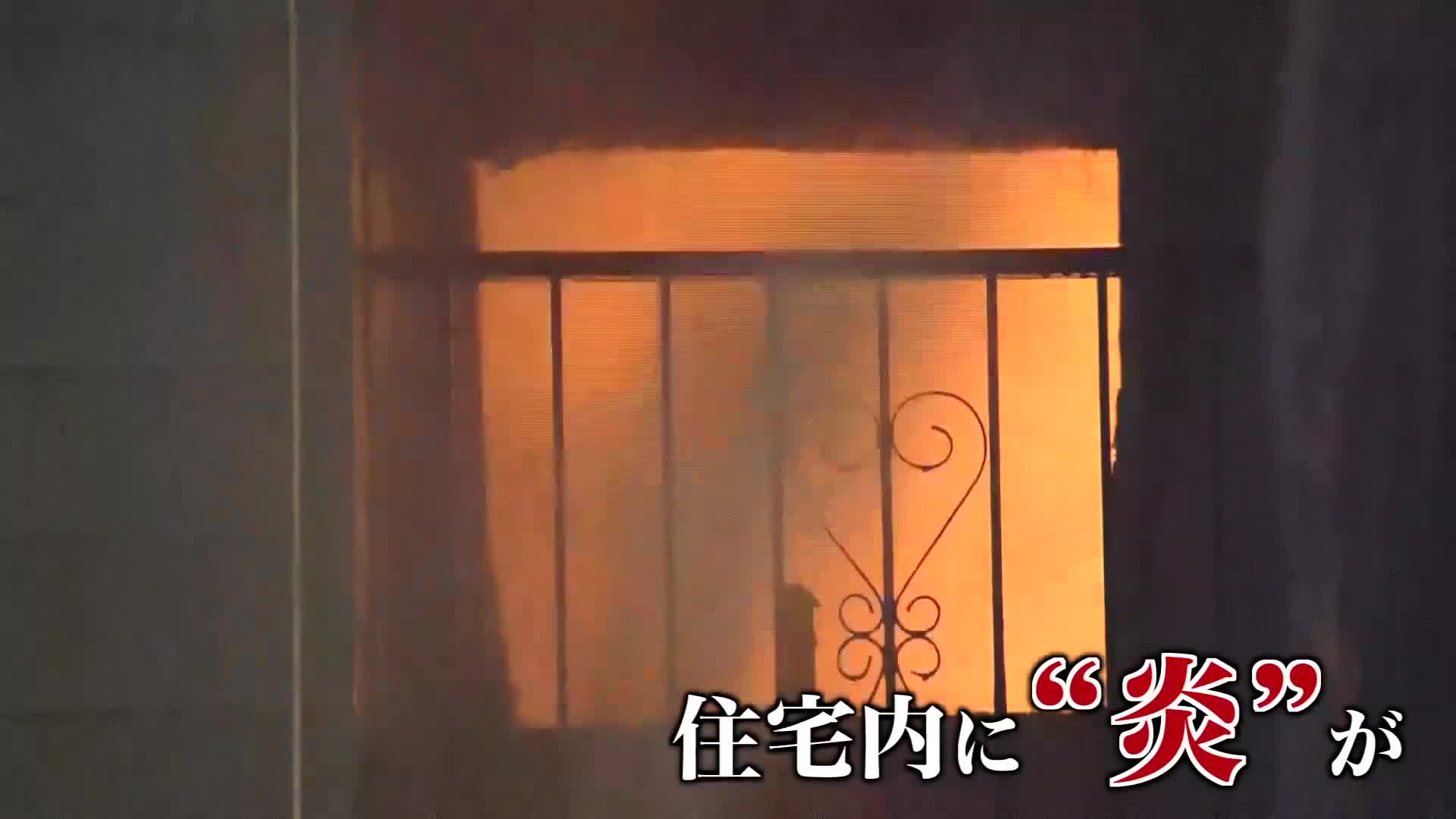 住宅の窓から見える赤い炎。室内で激しく立ち上っているのが分かります。