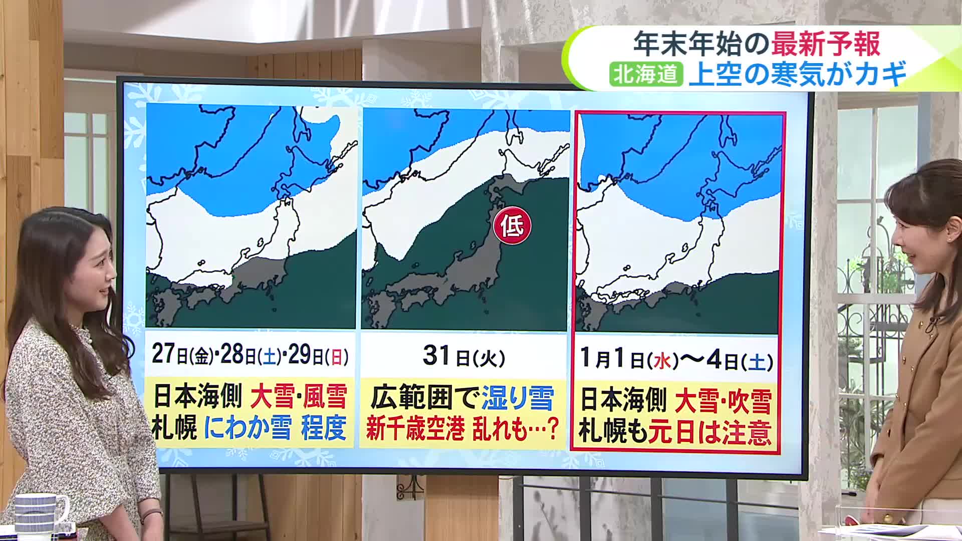 北海道【菅井さんの天気予報 12/25(水)】年末年始の大雪注意日は?札幌も元日は積雪が増える可能性も…初詣など外出は気を付けて