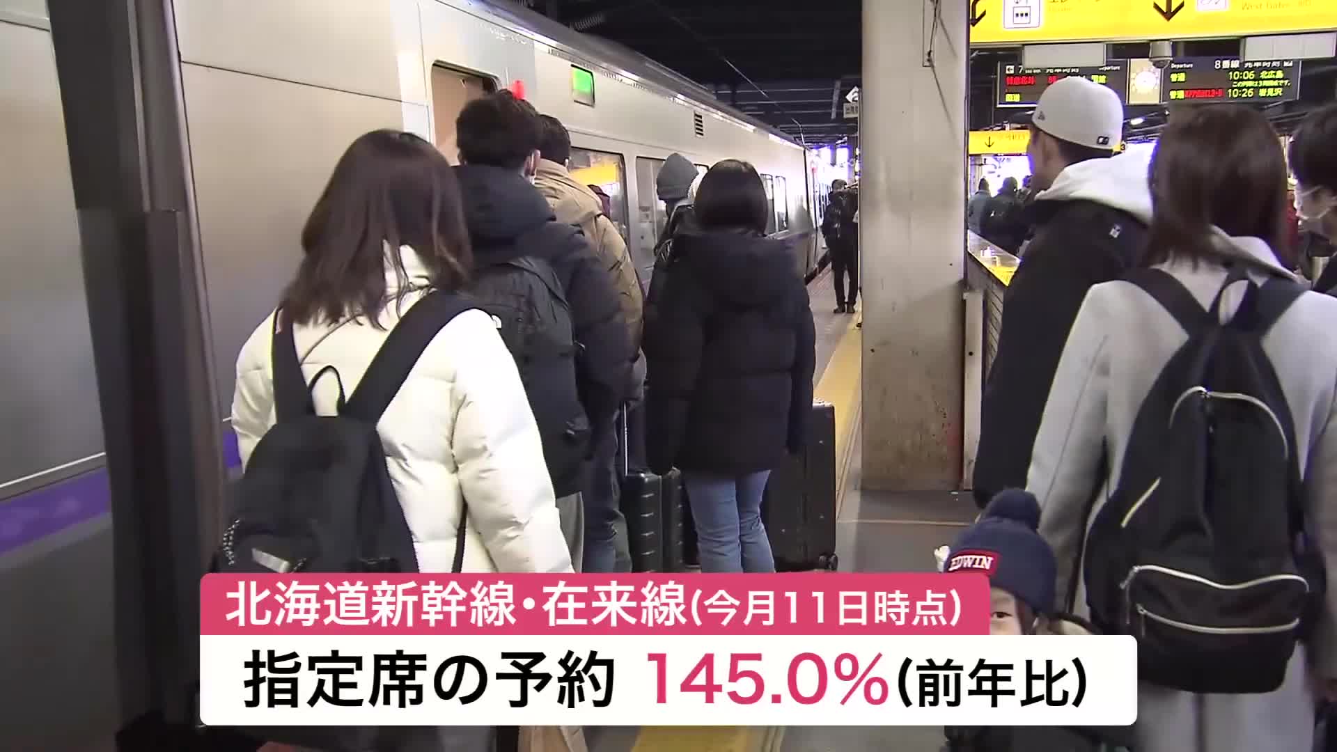 北海道のJR札幌駅は12月28日朝から混雑しており、JR北海道によりますと、12月11日時点での北海道新幹線と在来線の指定席予約は前年に比べて145%となっています。