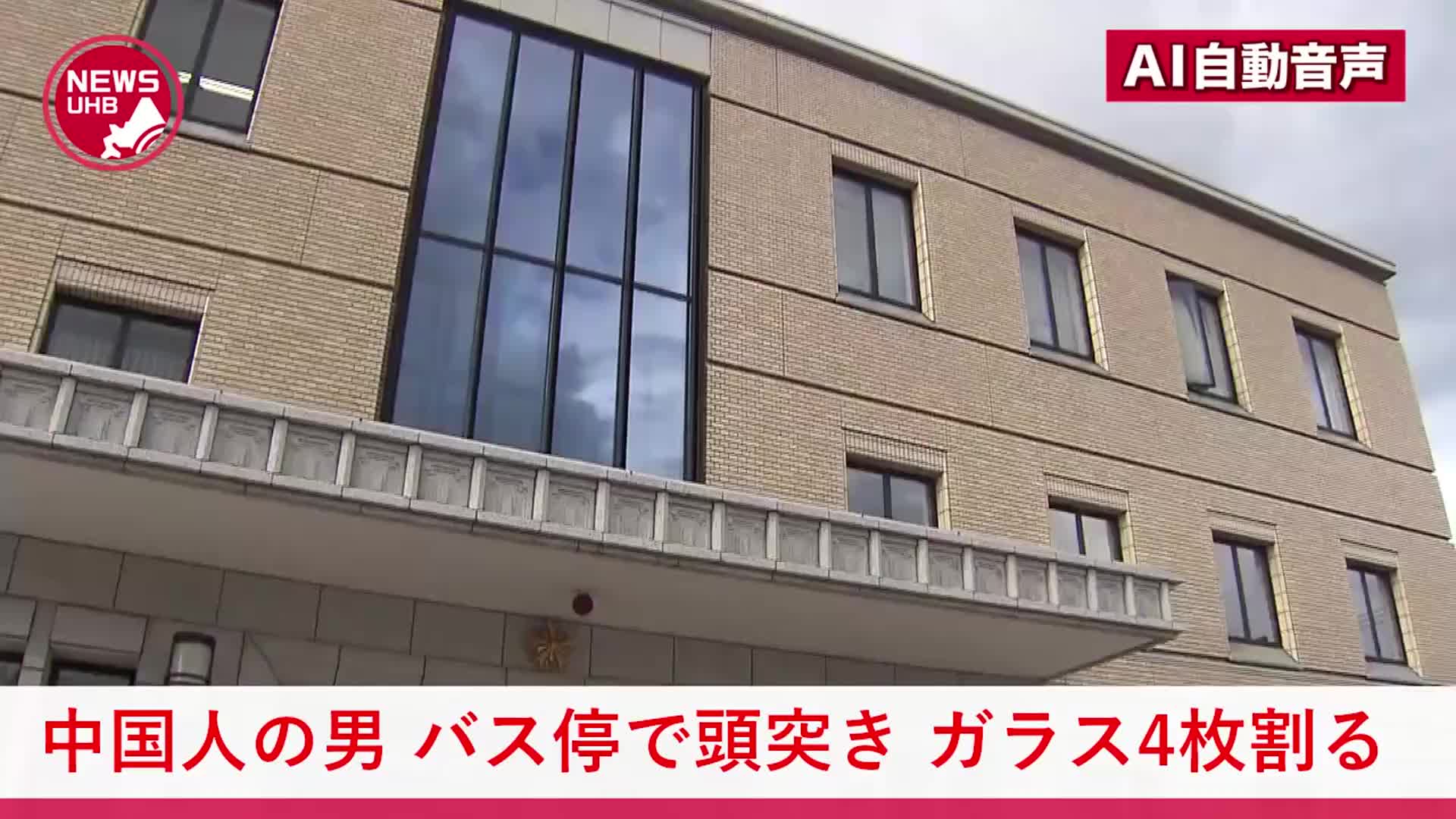 バス停の風除室の窓ガラスを頭突きで破壊した中国籍の29歳の会社役員の男が、器物損壊の現行犯で逮捕されました。