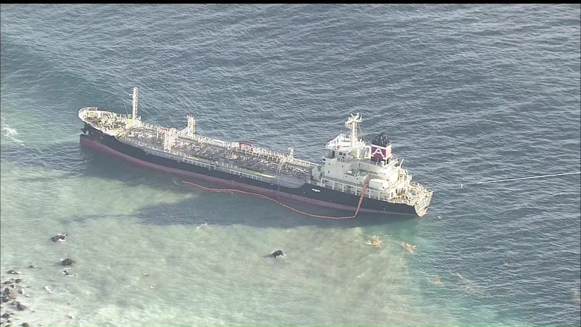 「座礁したタンカーは波の影響か、7日とは位置が少し変わっています。そして周りには油の臭いが漂っています」(佐藤健 カメラマン)