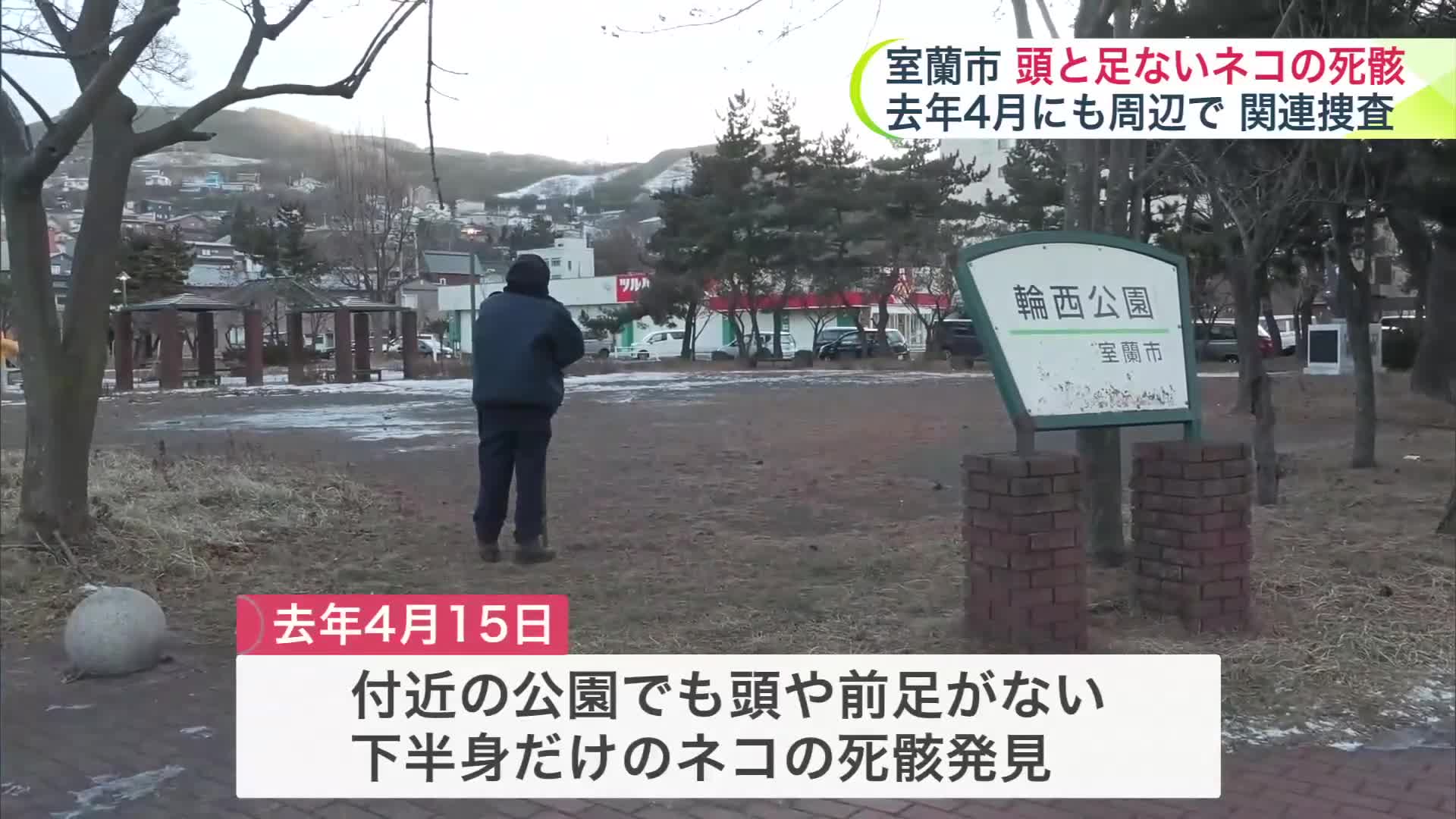 2024年4月にも、付近の公園で頭や前足がない下半身だけのネコの死骸が見つかっています。