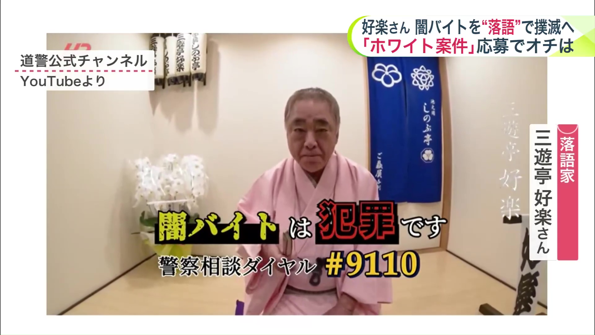 好楽さんが闇バイト撲滅に向けつくった落語。2023年からYouTubeの道警公式チャンネルや各警察署で公開されています。