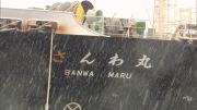 伐採された脇を、1月14日も観光バスが通行していきました。