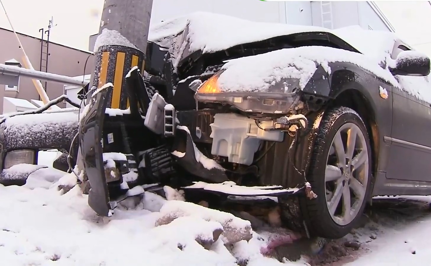17日午前5時30分ごろ、札幌市南区川沿5条2丁目で、乗用車が対向車線にはみ出しそのまま歩道の電柱に突っ込みました。