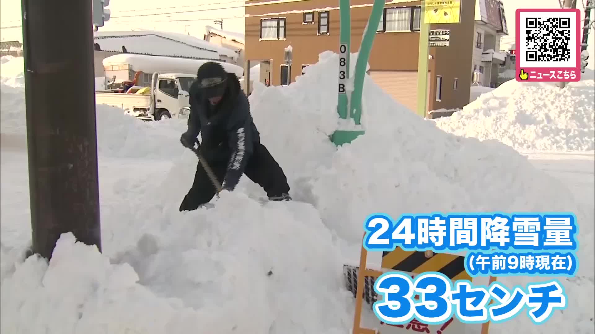 24時間で33センチの降雪があった空知の沼田町では、住民が朝から雪かきに追われていました。