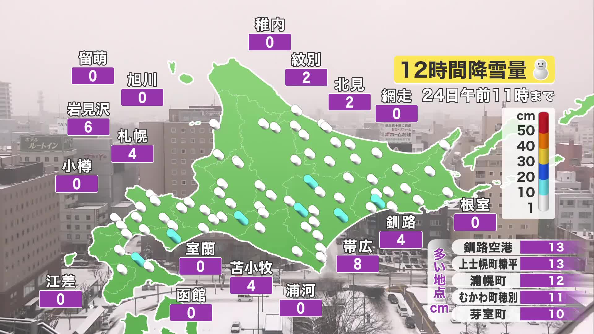 【北海道の天気 24(金)】久しぶりに太平洋側で新雪 あすはオホーツク海側で降雪30センチも…北海道は冬のイベントがスタート!週末の予報は?