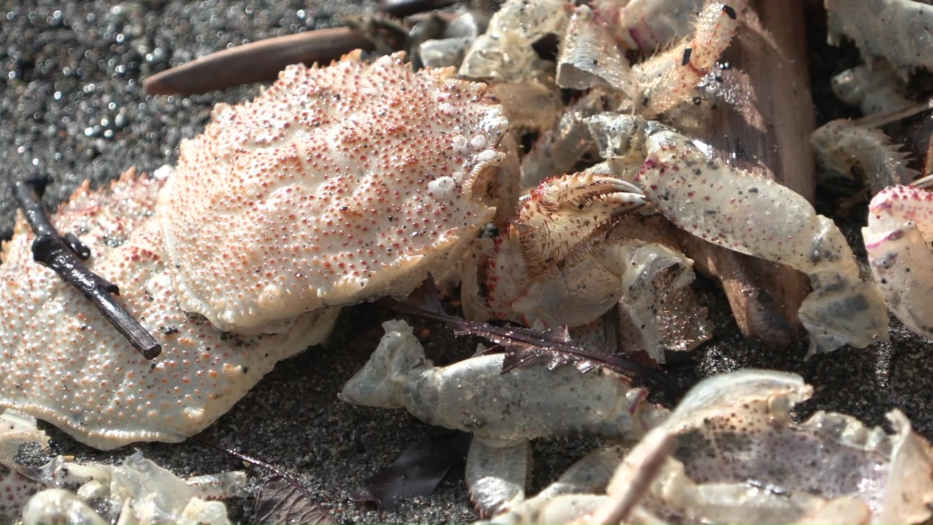 道総研によりますと、2~3月は毛ガニの「脱皮期」で、一足早く浅瀬で脱皮をした毛ガニの抜け殻が打ち上がったとみられています。
