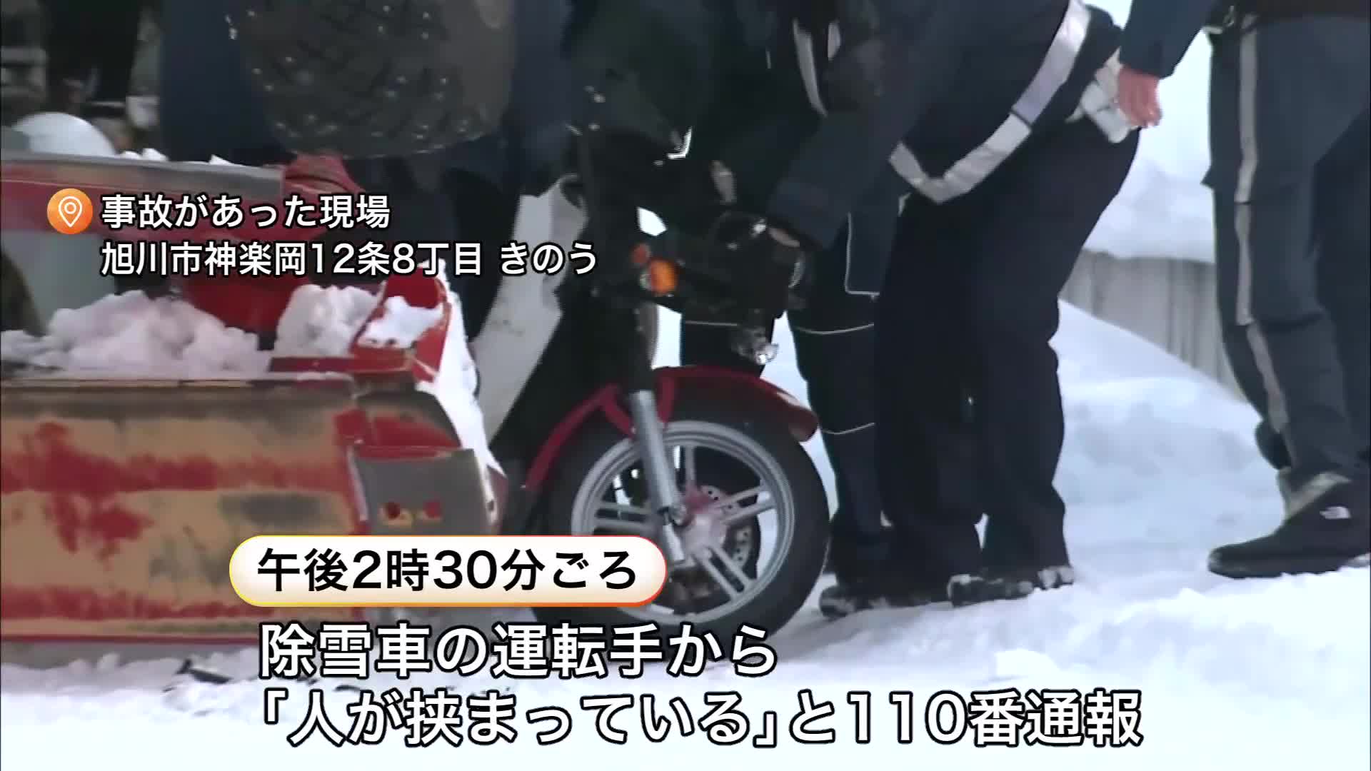 29日午後2時30分ごろ、旭川市の市道で除雪車の運転手から「人が挟まっている」と110番通報がありました。