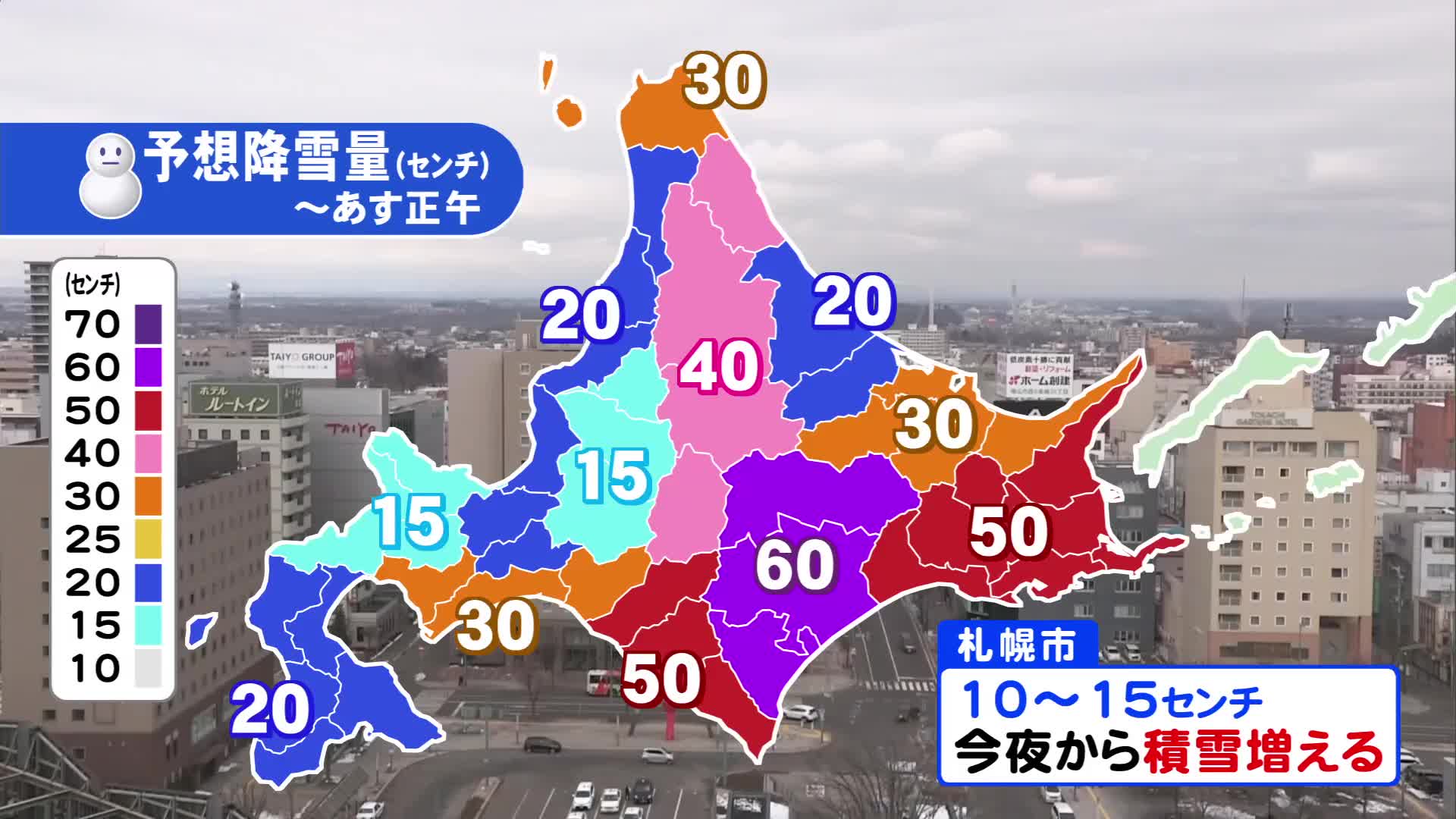 そのほかの地域も夜は雪が降り、内陸部は急激に積雪が増えるでしょう。