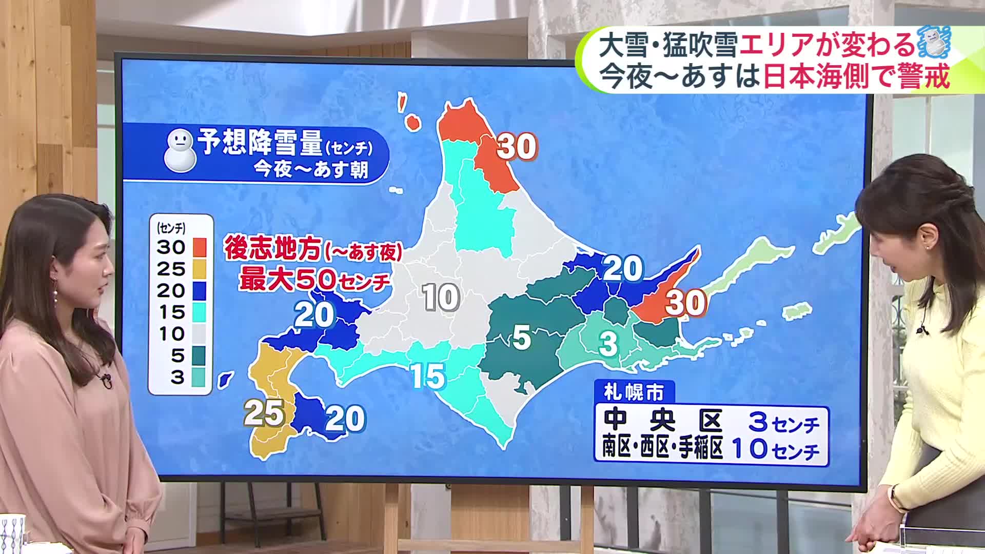 【大荒れエリアが変わる】道東で記録的ドカ雪のあとは…日本海側・道南で警戒!後志地方はあす夜までに最大50センチ【菅井さんの天気予報 4日(火)】