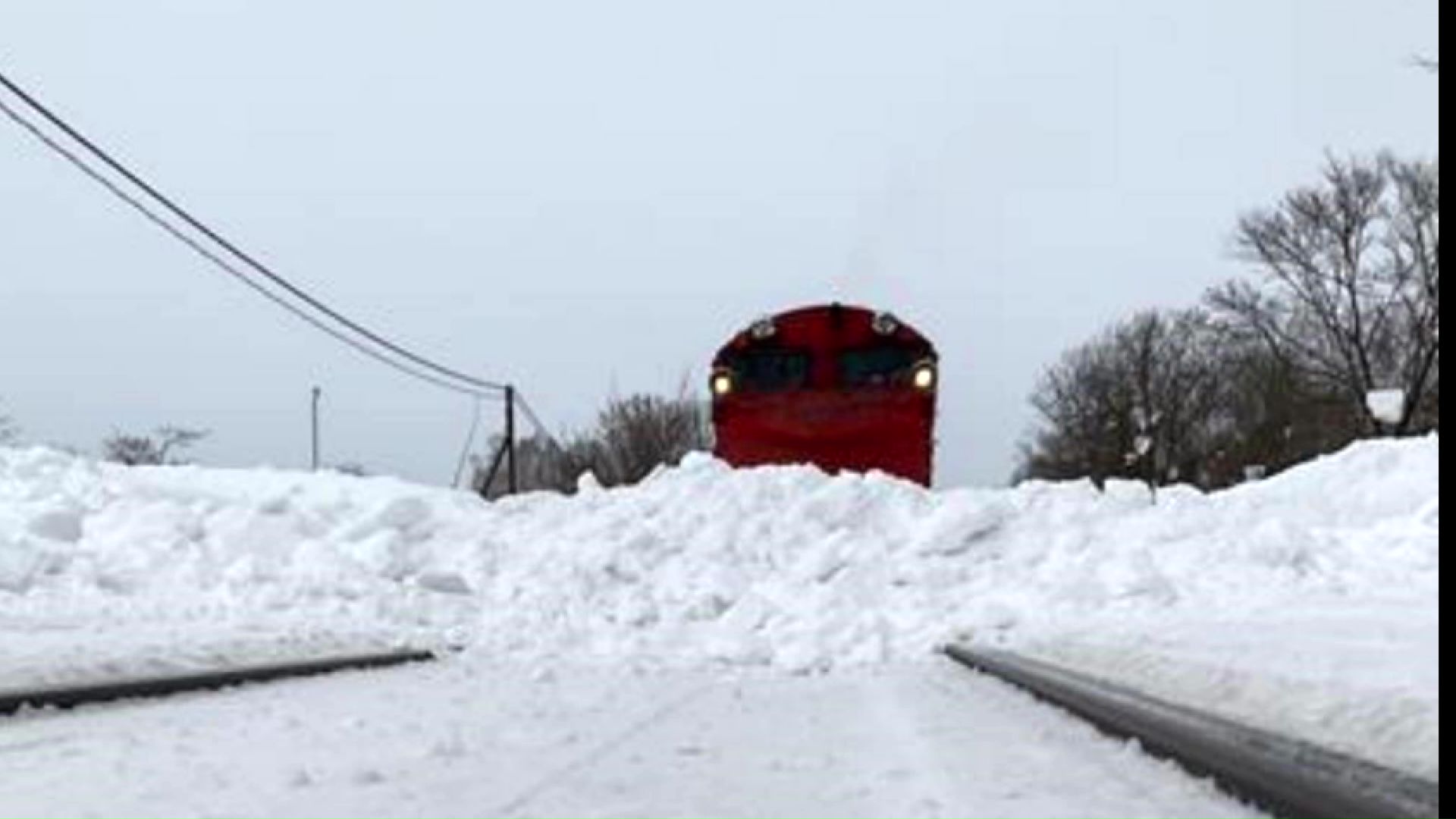 北海道北部の美深町の線路上に雪が積み上げられ除雪車両が緊急停止。