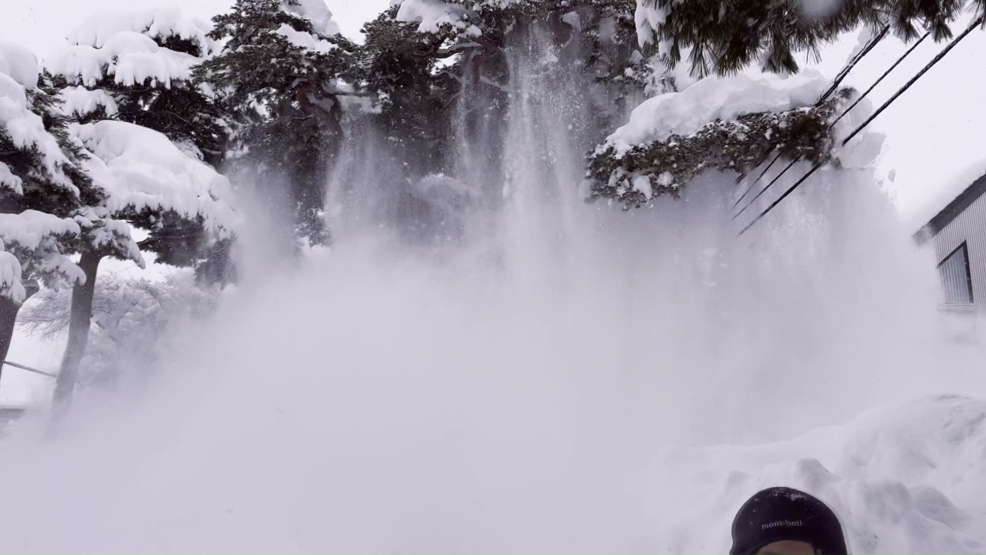 「バリバリ」と…木が折れる音がした後に、大量の雪が落ちてきているのが分かります。