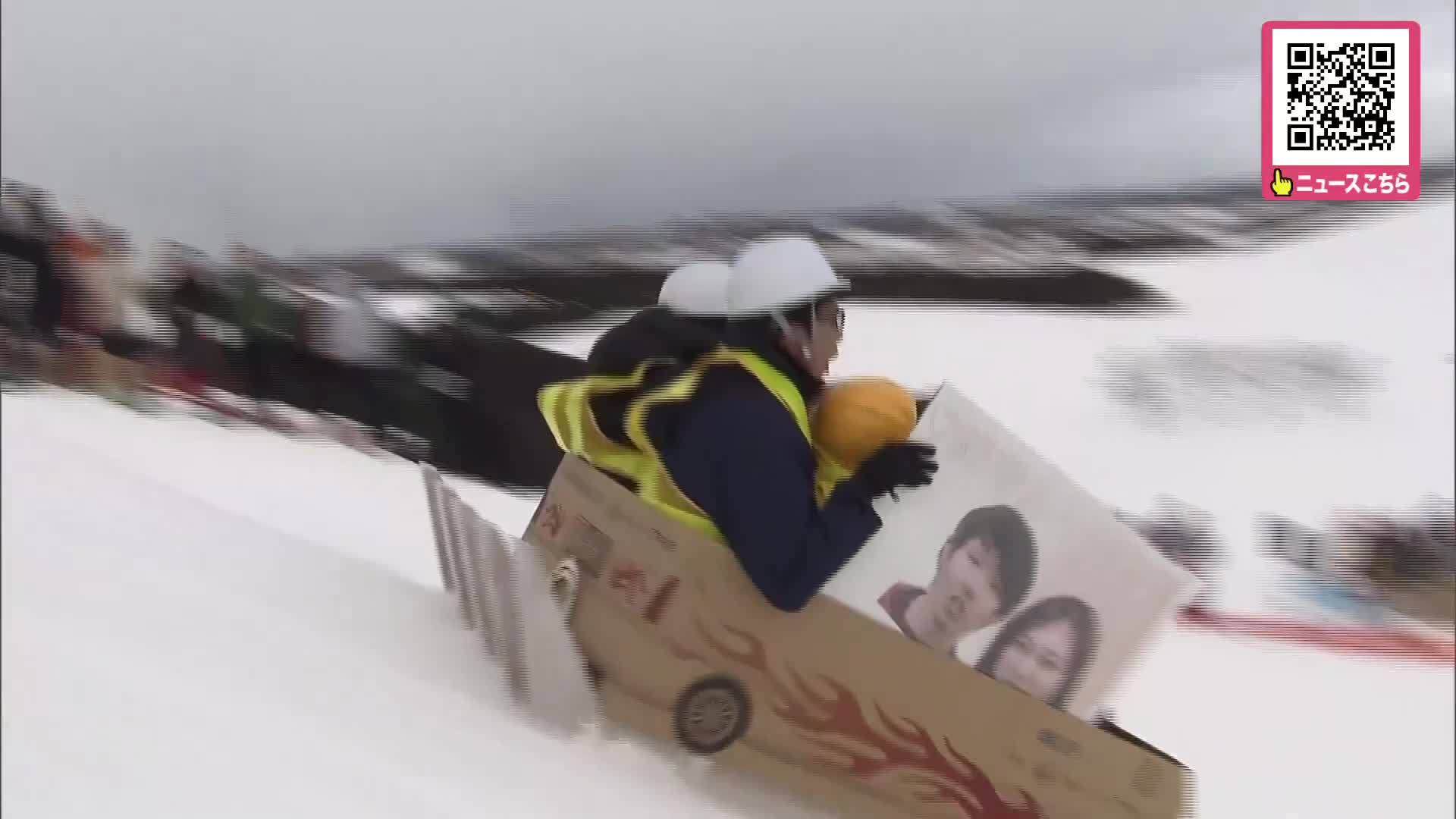 手作りの”段ボールそり”で爆走 過去最多の104チームが速さとパフォーマンスを競いゴール目指す 「第13回モエレ山爆走そり大会」 札幌市東区