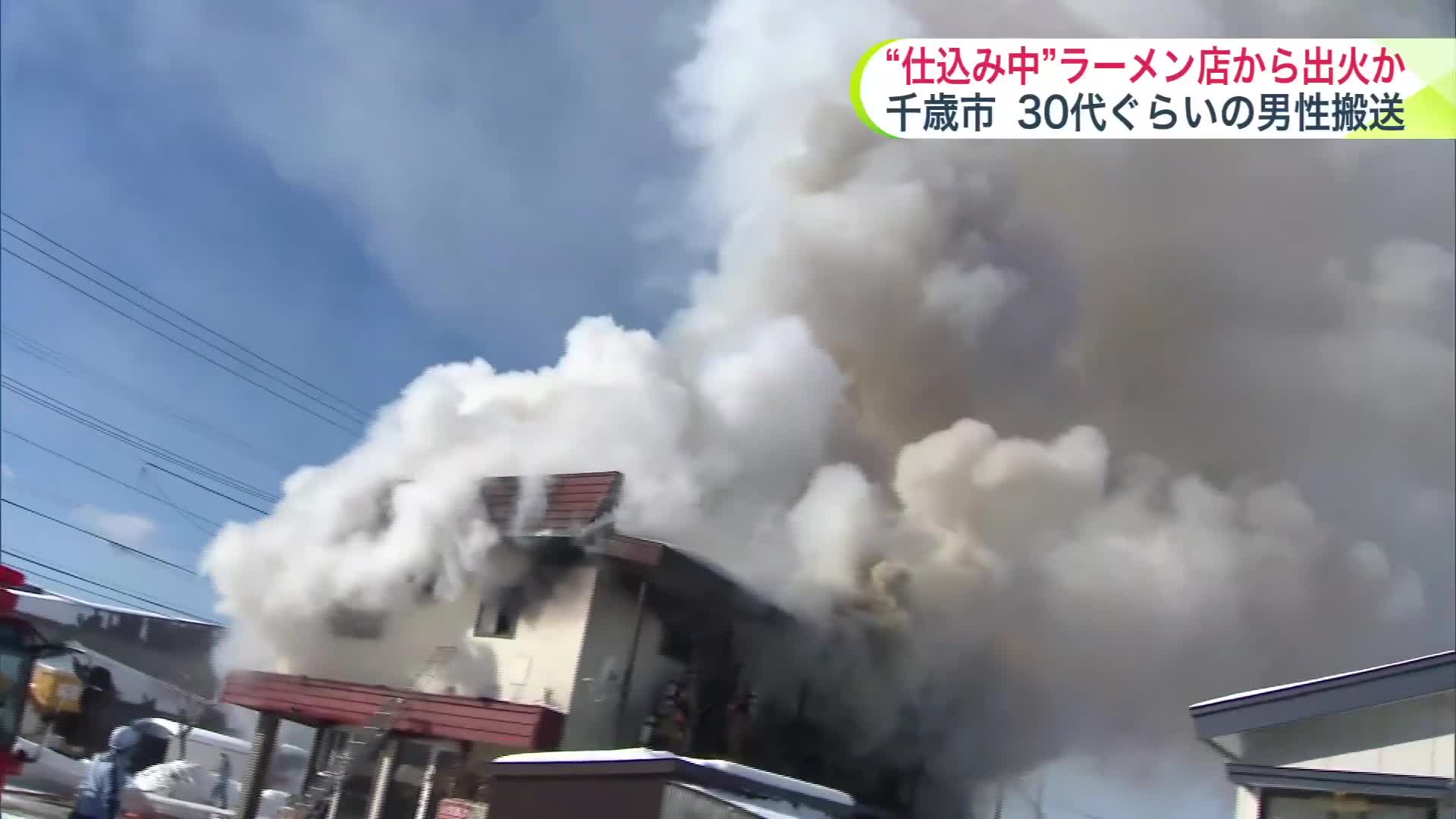 「火と煙が出てきてびっくりして戻ったが間に合わなかった」仕込み中にラーメン店から出火か…30代ぐらいの男性搬送_北海道千歳市