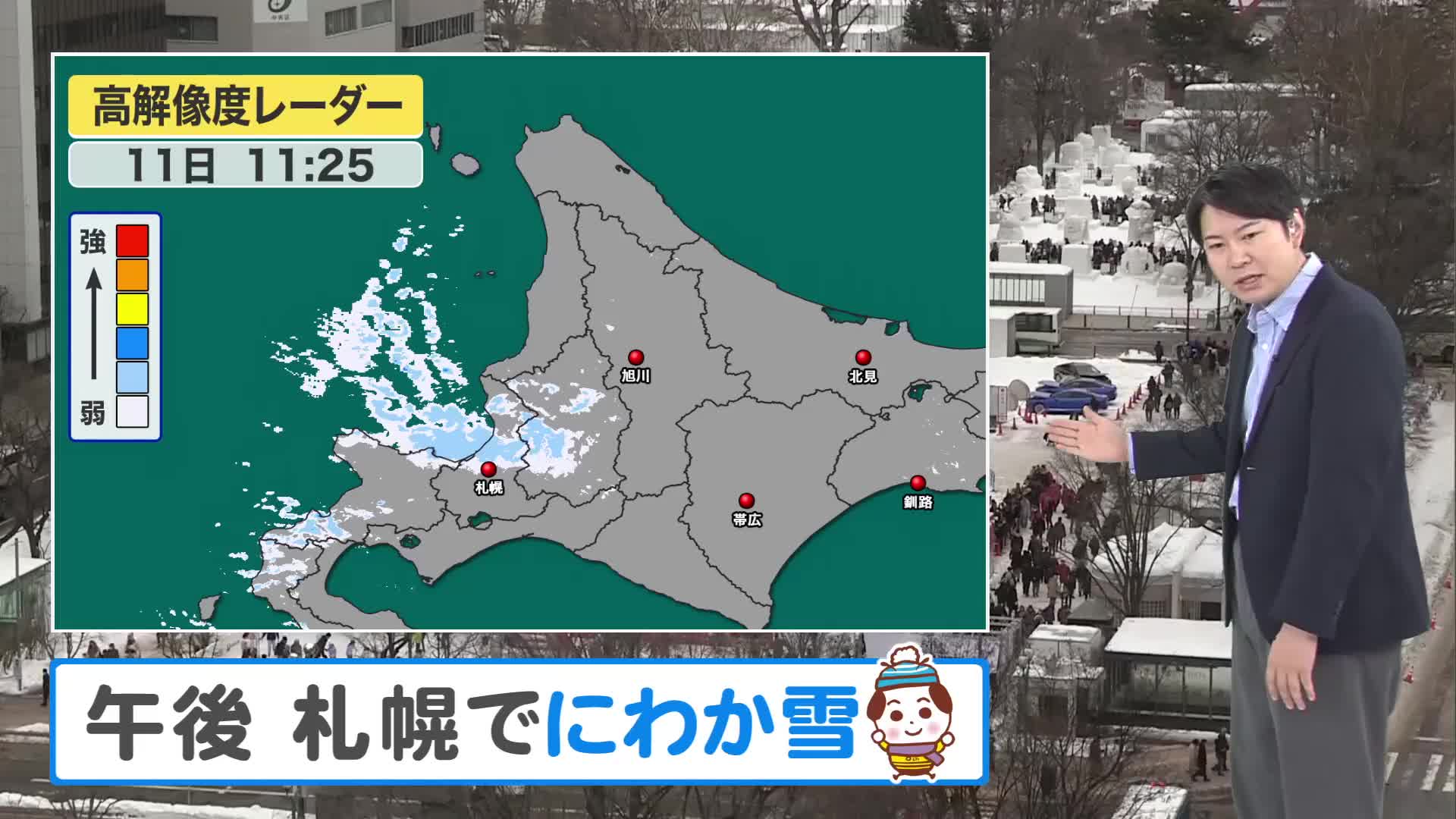 札幌でも昼過ぎからはにわか雪の降る時間がありそうです。