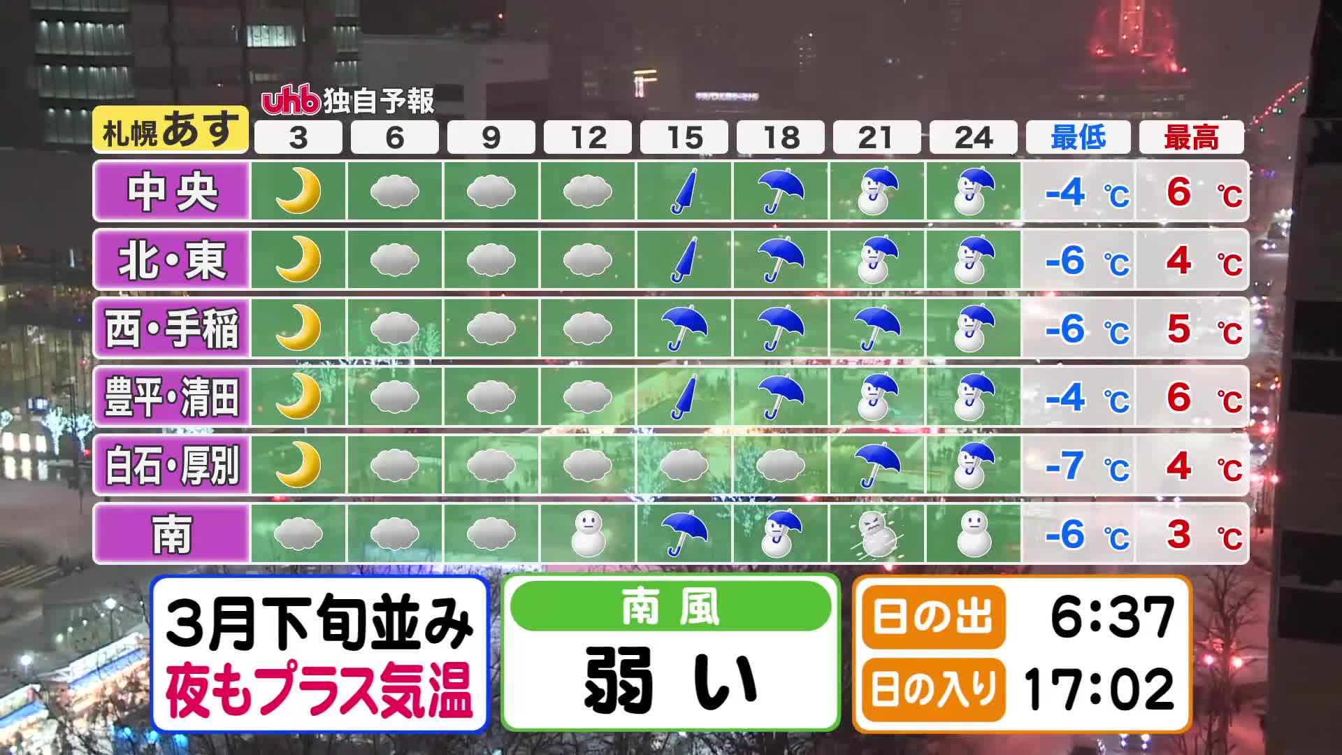 【北海道の天気予報 11日(火)】さっぽろ雪まつりが終わると春!?あすの札幌は6℃予報!3月下旬並みの暖気で午後は雨も…