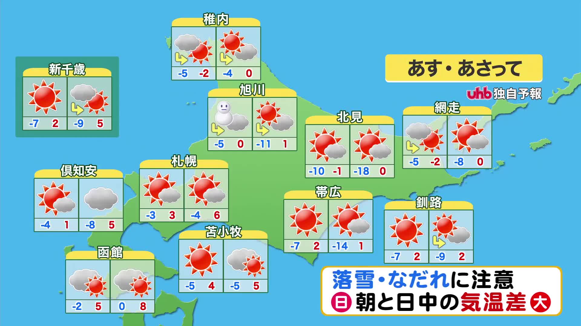 最高気温は札幌3℃、帯広2℃、函館5℃です。