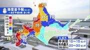 留萌中部・南部、石狩中部、後志地方で、最大30センチです。