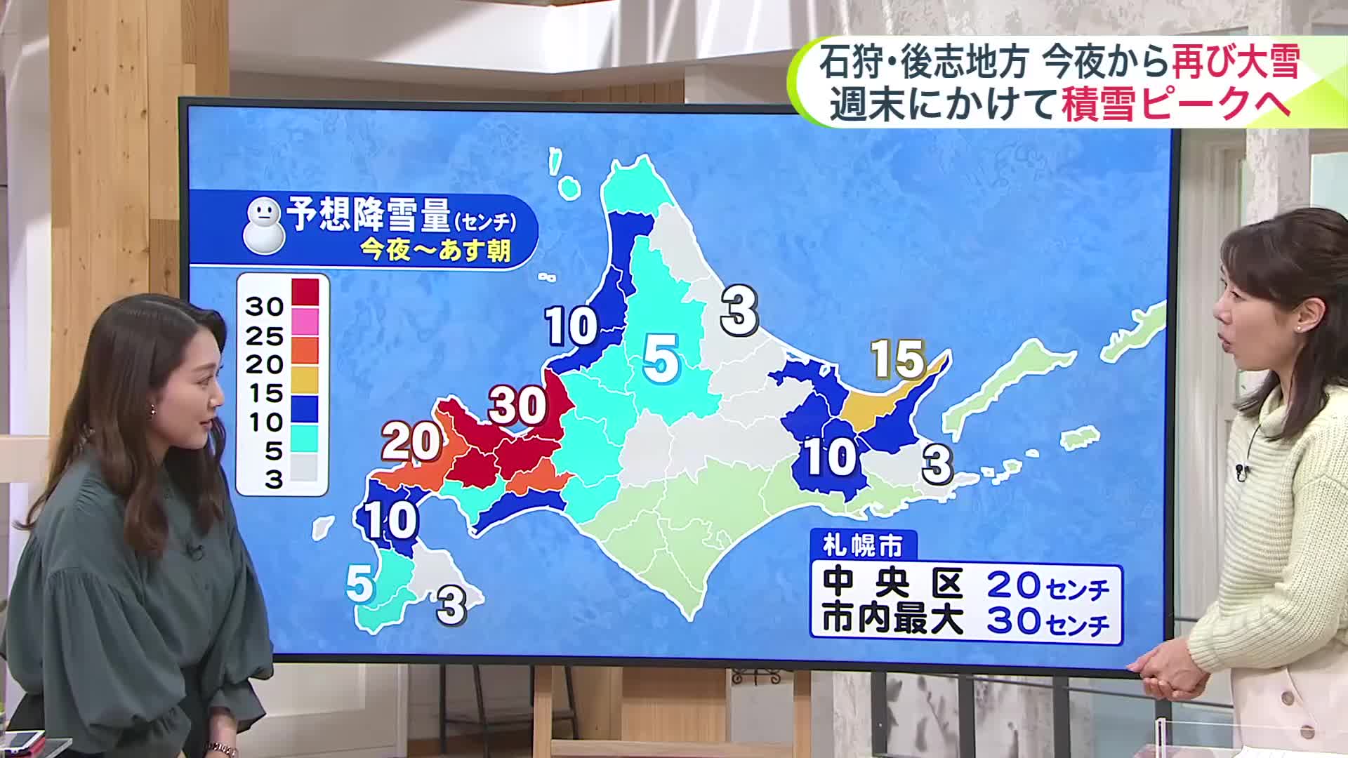 【大雪情報】石狩・後志地方は今夜から再び大雪に…札幌市内も最大30センチ!3連休は?【菅井さんの天気予報 20日(木)】
