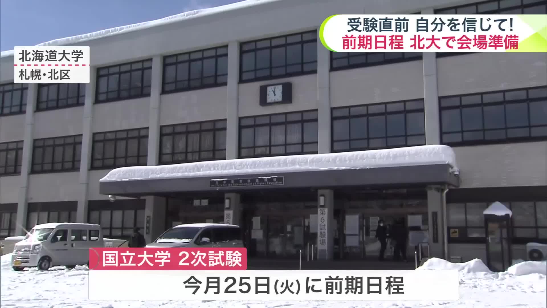 札幌市北区の北海道大学では2月21日、職員が座席に受験番号を貼るなど試験会場の準備を行いました。